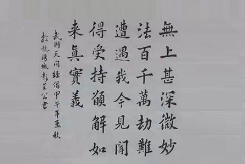 传说武则天是虔诚的佛教徒,对《华严经》非常的爱好,但是她总觉得晋译的《华严经》不完整。后来她听说于阗国的三藏法师有完整的本子,她就连法师一起请到中国来,这个法师是实叉难陀。在实叉难陀的主持下,重新译经,译成之后,武则天初阅《华严经》时,因体会佛法的高妙稀有,非常欢喜,故有感而发,给这个大经题了一首开经偈,这就是我们现在念的开经偈。