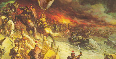 左翼的张元徽是北汉的第一悍将,尤其擅长重骑兵冲锋,在此战之前,已经阵斩后周大将穆令均。他接到刘崇出击的军令,身先士卒,亲率部众冲向周军的右翼,四千名铁甲骑兵鼓噪着逆风而进。对面的樊爱能和何徽本来正在为风向有利而窃喜,正猜测敌军要不战而逃了,没想到对方却气势汹汹的朝自己冲来,被吓得不轻。樊、何都是后汉的老将,对后周尤其是周世宗谈不上什么忠诚,面对张元徽的雷霆重击,更不可能奋死血战。樊爱能的骑兵自然挡不住热血澎湃的张元徽,何快被冲散。败下来的骑兵一乱,就把何徽的步兵方阵也冲乱了。这两位见势不妙,就撒下自己的部众不管,骑着快马就逃离了战场。北汉军见张将军击溃了敌军一翼,士气大振,纷纷顶着风沙,向周军阵型发起了猛冲,周军右翼顿时溃败。