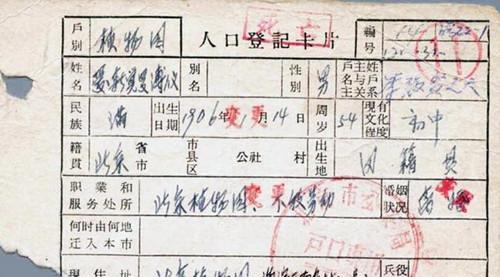 揭秘末代皇帝溥仪的户口簿:警官登记写错两处
