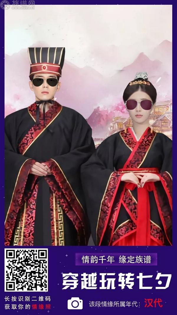 佳期如至,族谱网联合帮帮测为您和另一半精心定制了一套七夕情缘照。这个七夕,就让爱穿越千年,一张情缘照比一句“我爱你”更靠谱~
