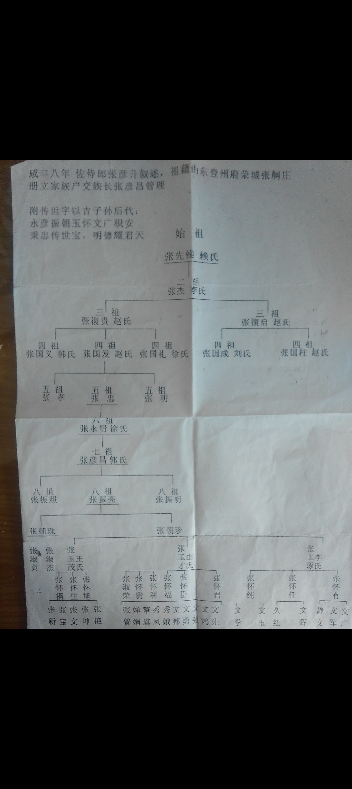 张氏字辈:元宗伦大,明昨维贤,庭忠益德,必映登联,荣光百世,孝有流传,安邦定国,福泽昭然。