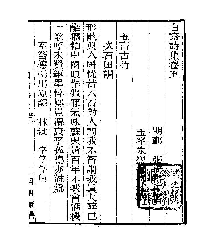 四明叢書白齋詩集_張壽鏞鄞縣張氏約園