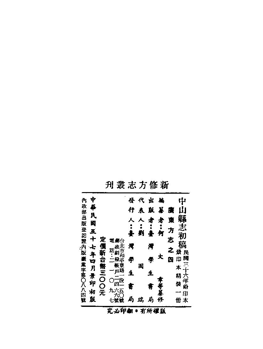 中山縣志初稿_何大章纂修臺灣學生書局臺北
