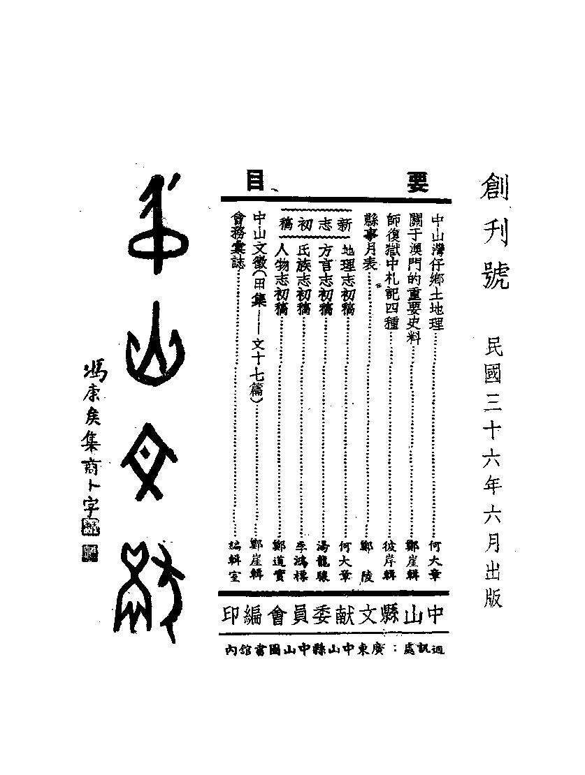 摘自《中山縣志初稿_何大章纂修臺灣學生書局臺北》