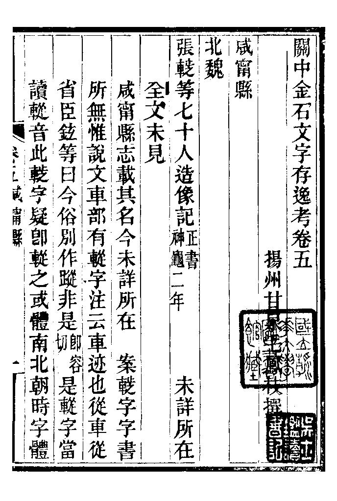 關中金石文字存逸攷_毛鳳枝會稽顧氏萍鄉縣署