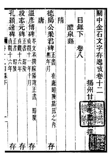 關中金石文字存逸攷_毛鳳枝會稽顧氏萍鄉縣署