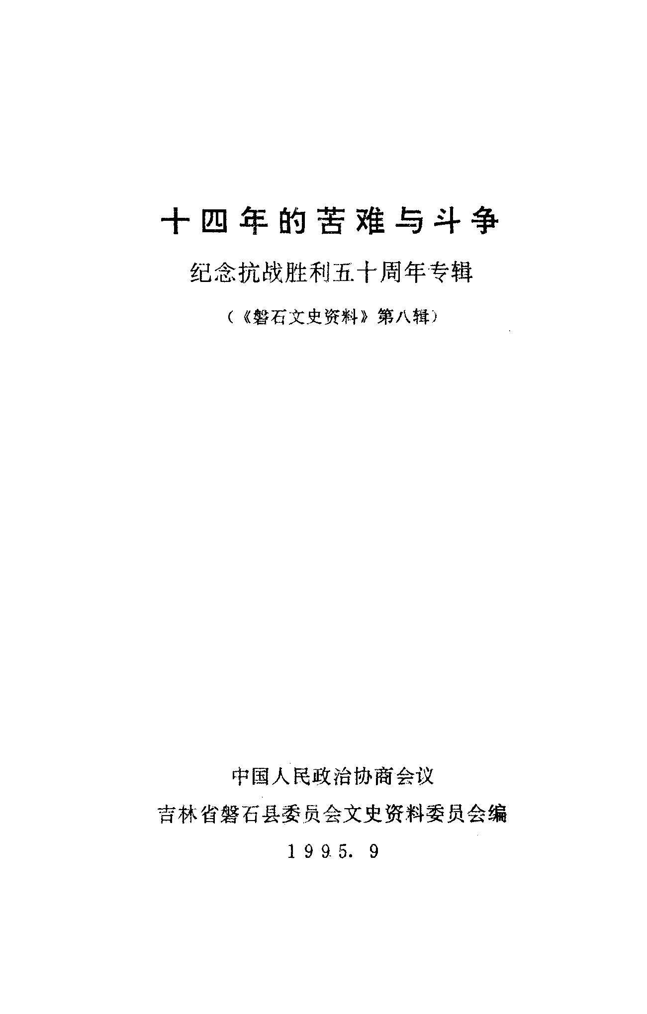 磐石文史資料第八輯_政協吉林省磐石縣委員會文史資料委員會