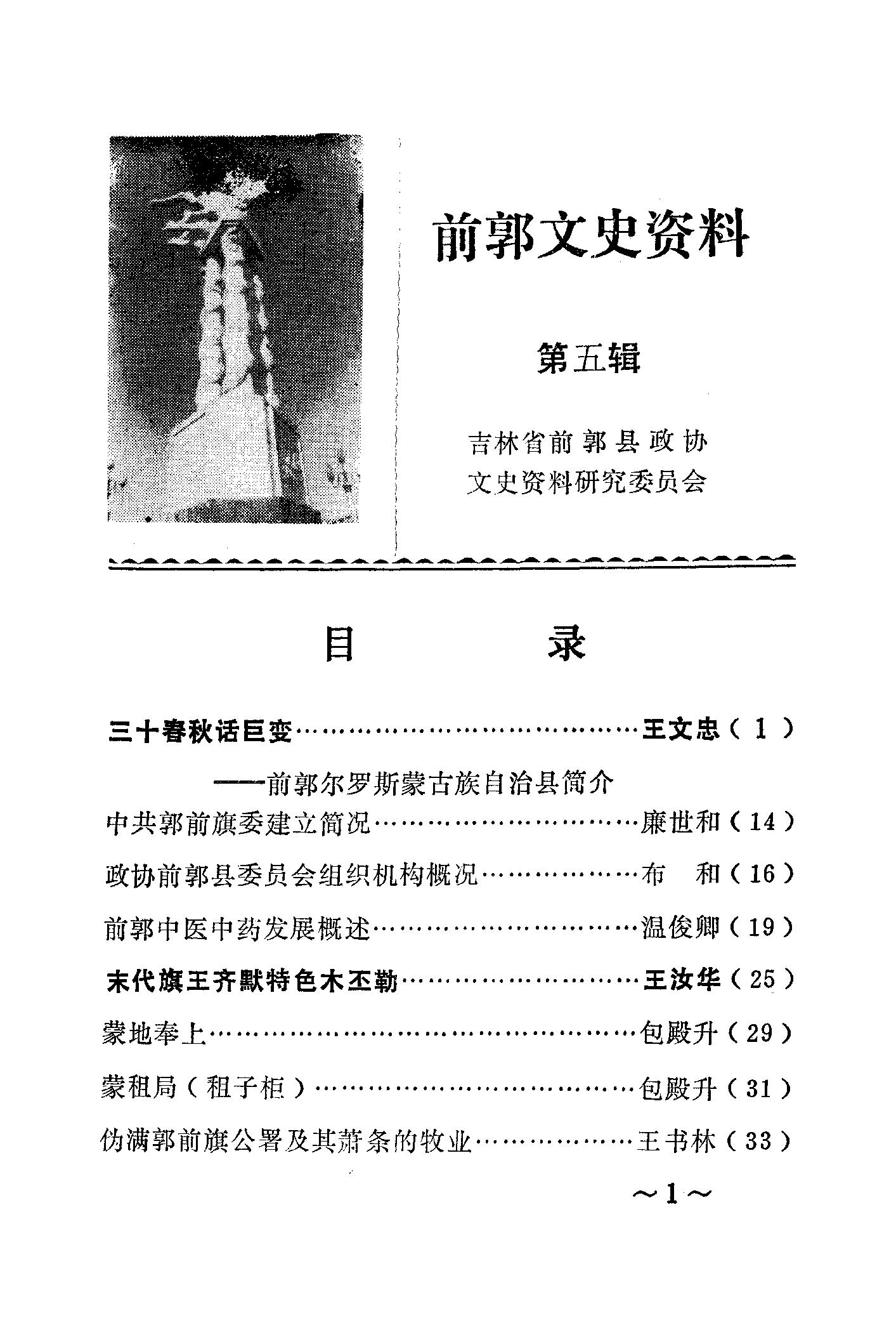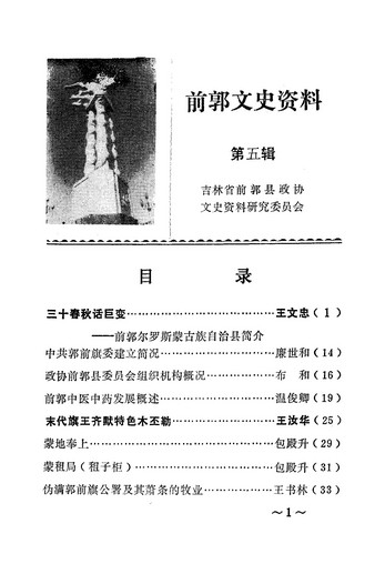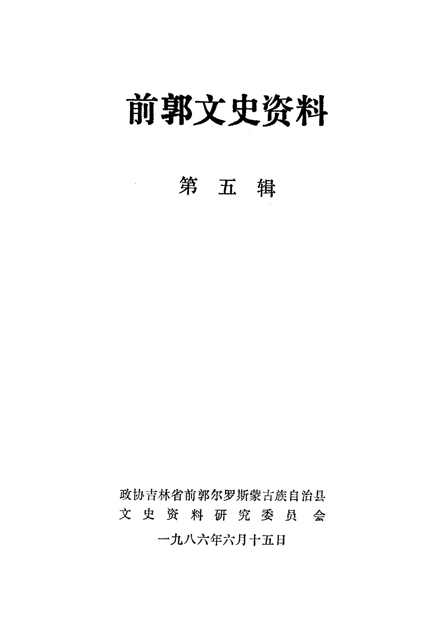 前郭文史資料第五輯_政協吉林省前郭爾羅斯蒙古族自治縣文史資料研究委員會