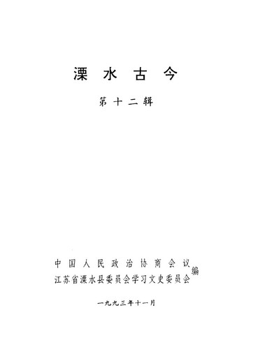 溧水古今第十二輯_政協江蘇省溧水縣委員會學習文史委員會