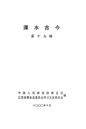 溧水古今第十七輯_政協江蘇省溧水縣委員會學習文史委員會