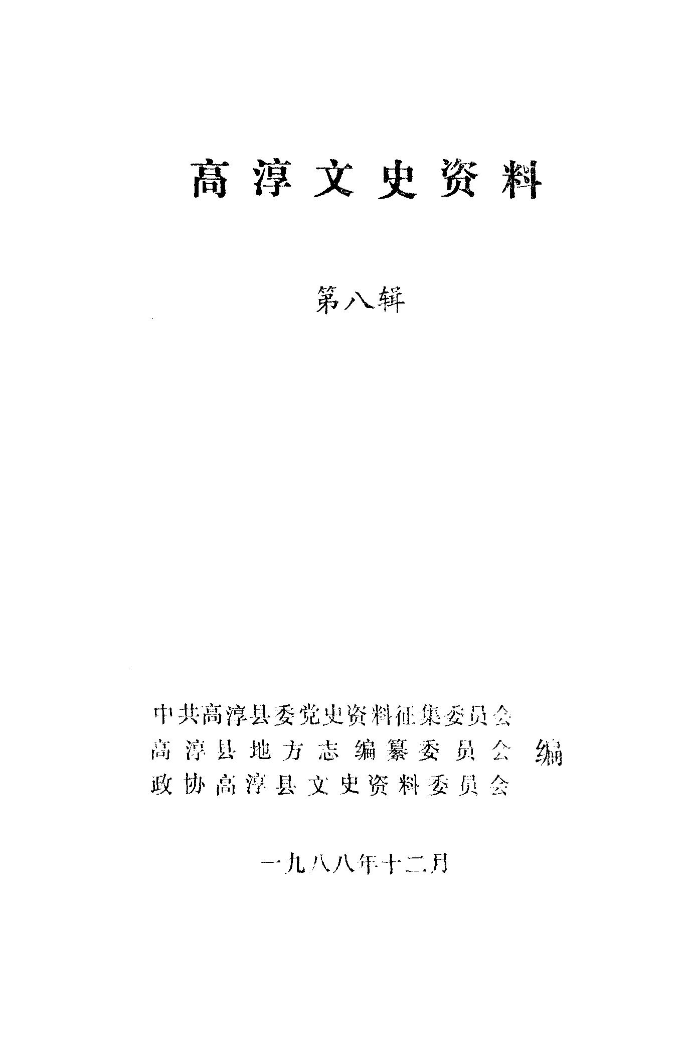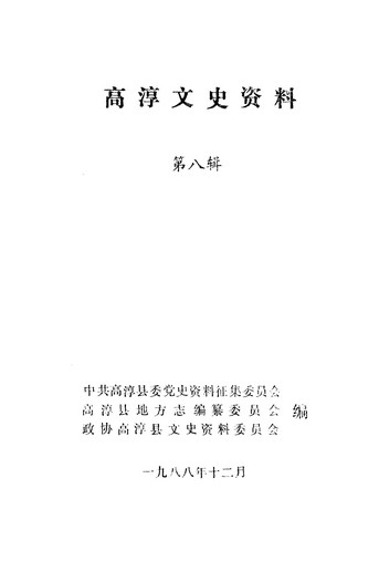 高淳文史資料第八輯_中共高淳縣委黨史資料徵集委員會高淳縣地方志編纂委員會