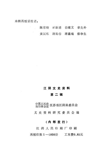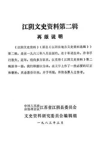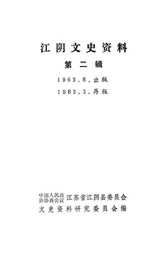 江陰文史資料第二輯_政協江蘇省江陰縣委員會文史資料研究委員會