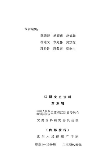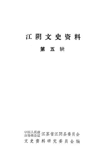 江陰文史資料第五輯_政協江蘇省江陰縣委員會文史資料研究委員會