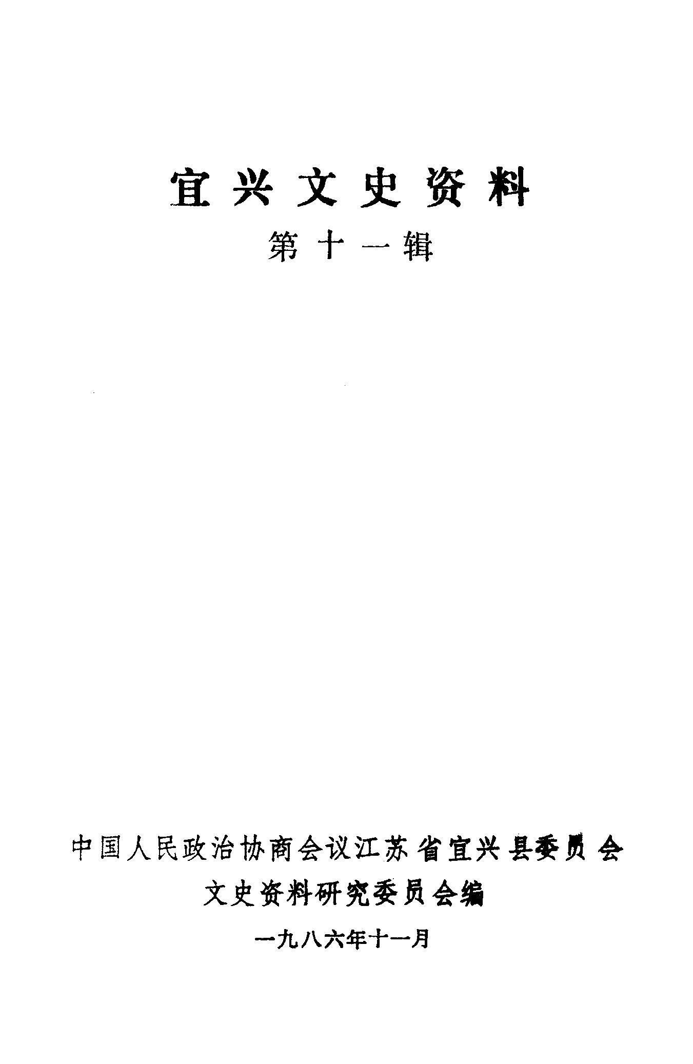 宜興文史資料第十一輯_政協江蘇省宜興縣委員會文史資料研究委員會