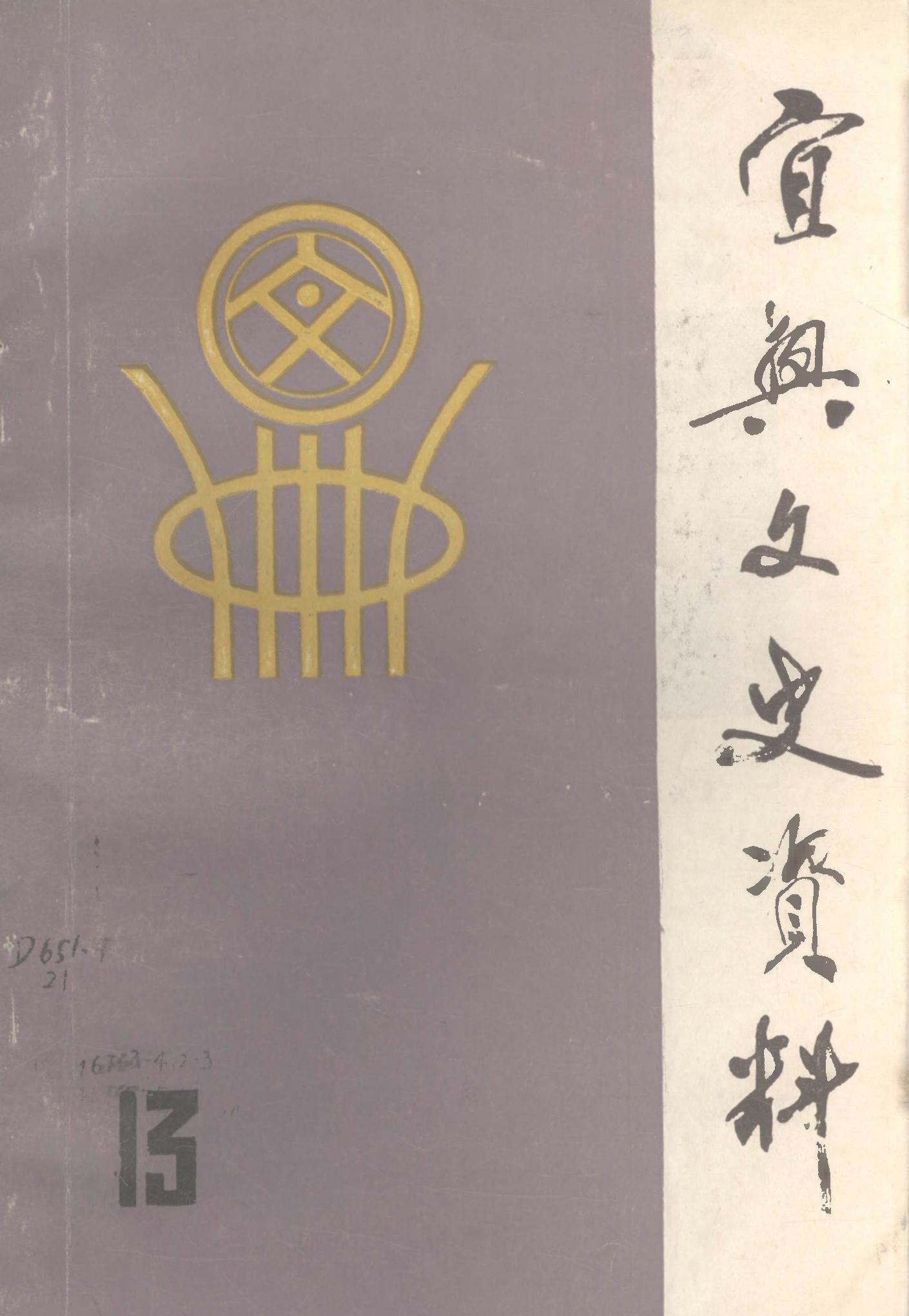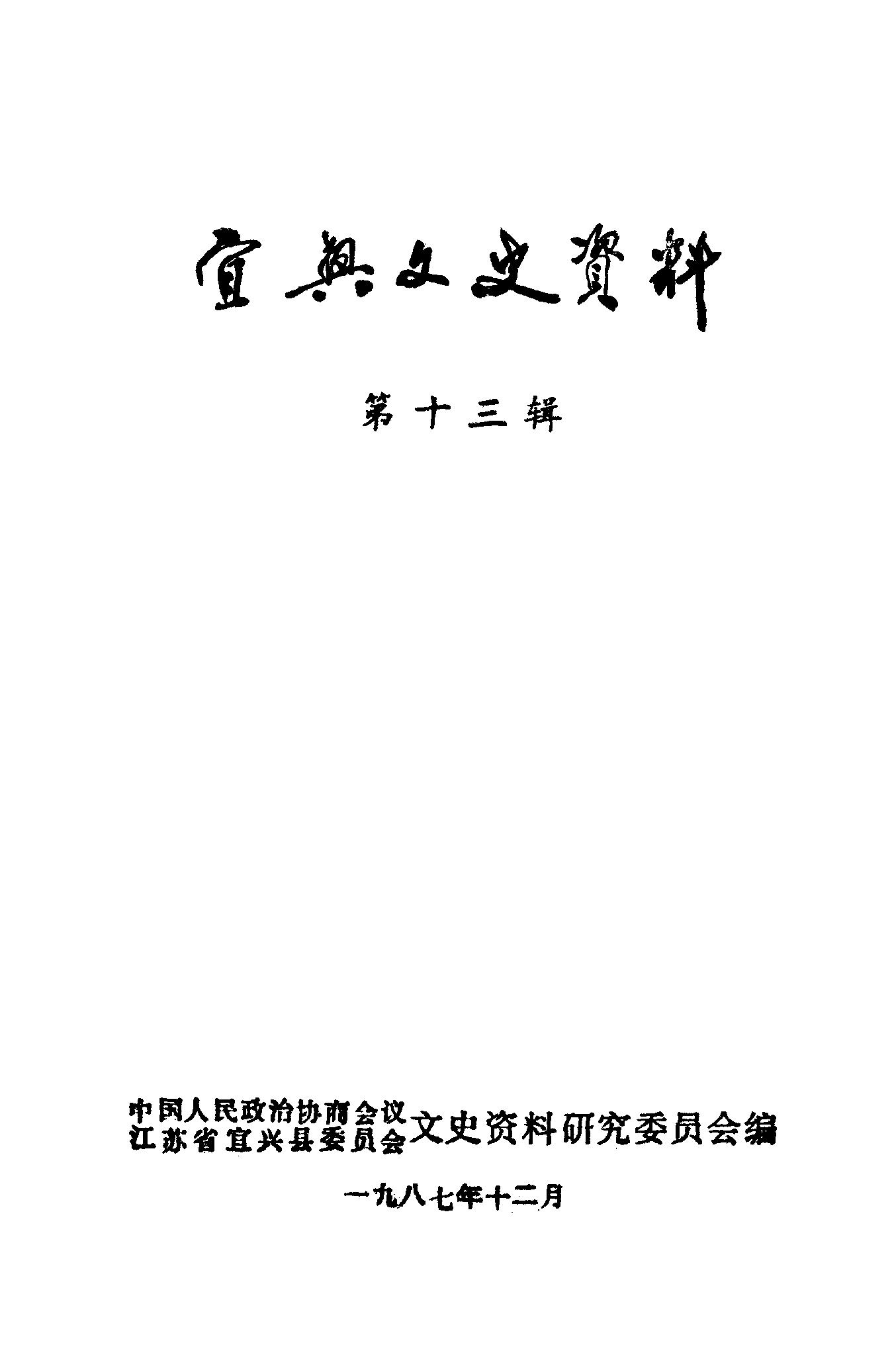 宜興文史資料第十三輯_政協江蘇省宜興縣委員會文史資料研究委員會