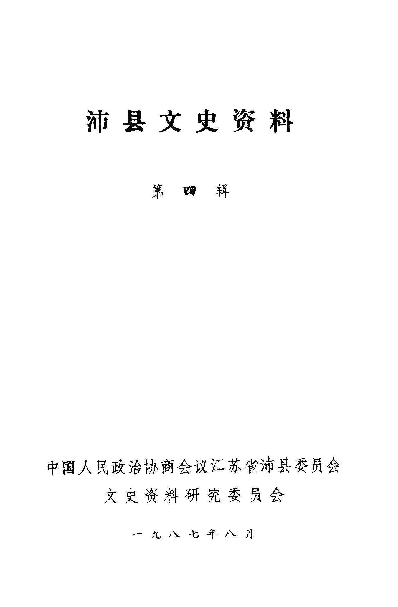 沛縣文史資料第四輯_政協江蘇省沛縣委員會文史資料研究委員會