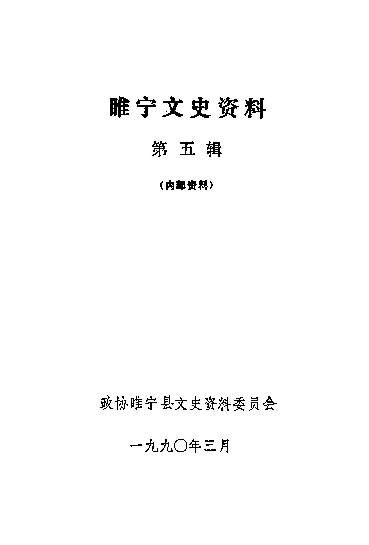 睢寧文史資料第五輯_政協睢寧縣文史資料委員會