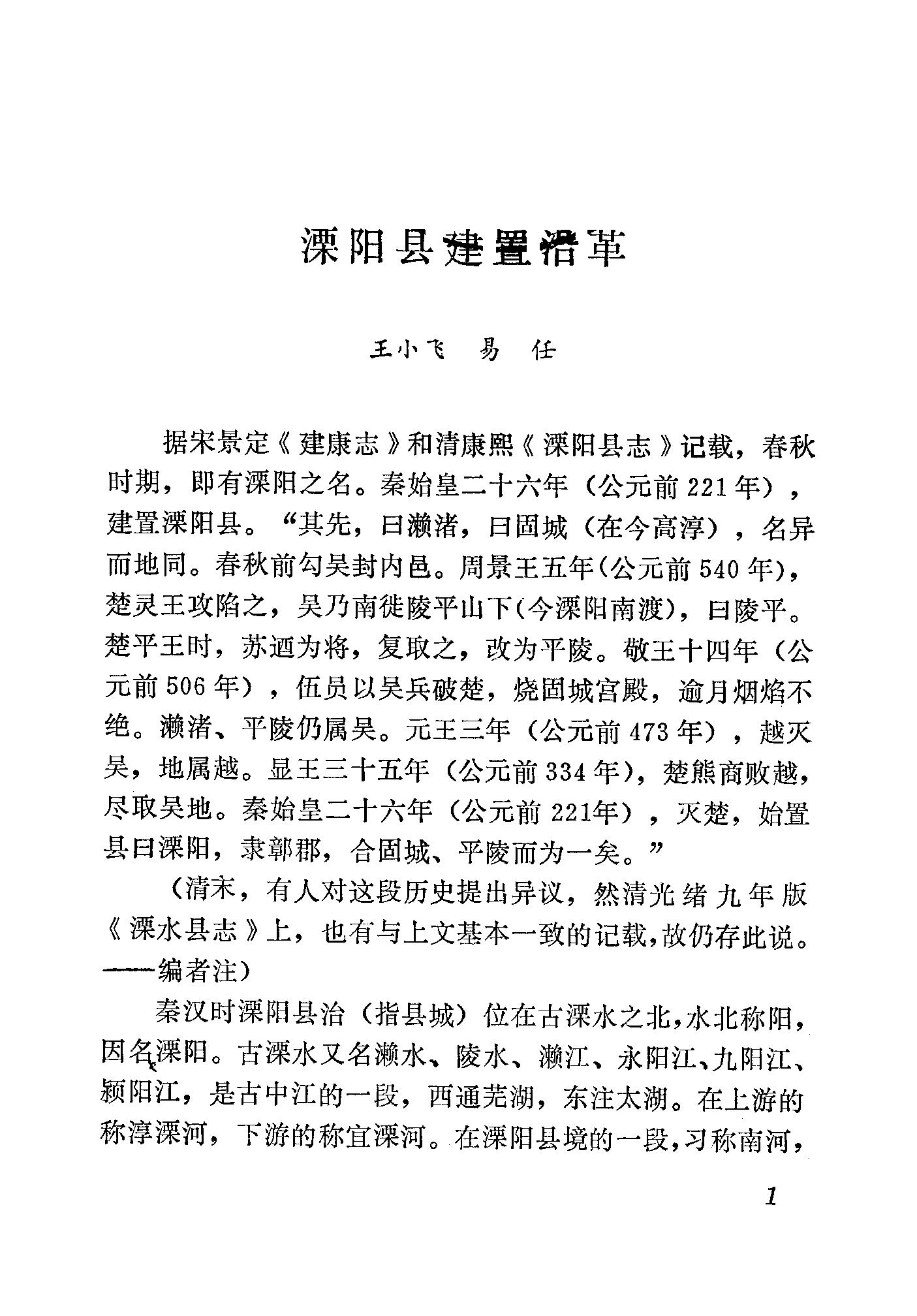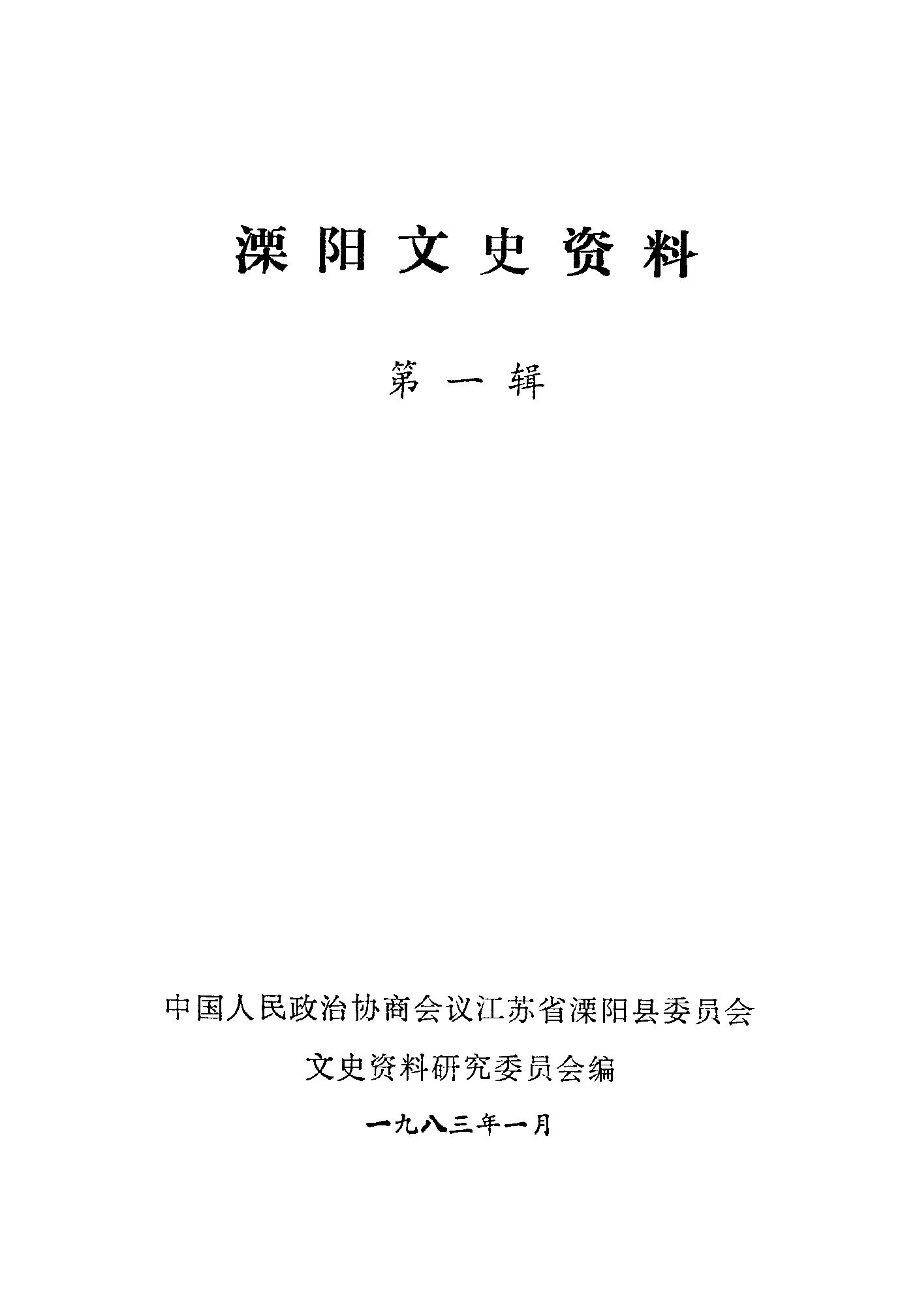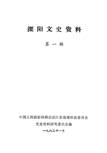 溧陽文史資料第一輯_政協江蘇省溧陽縣委員會文史資料研究委員會