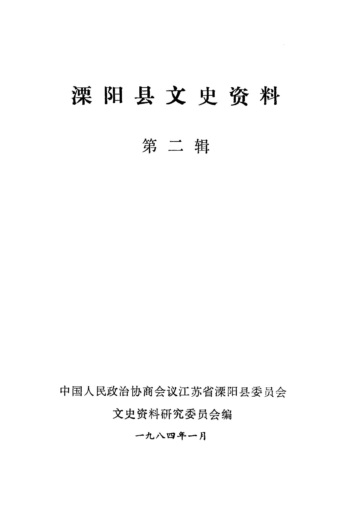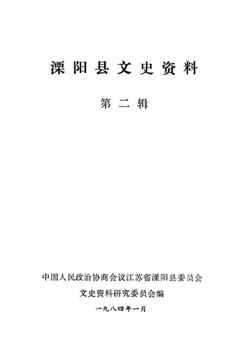 溧陽縣文史資料第二輯_政協江蘇省溧陽縣委員會文史資料研究委員會