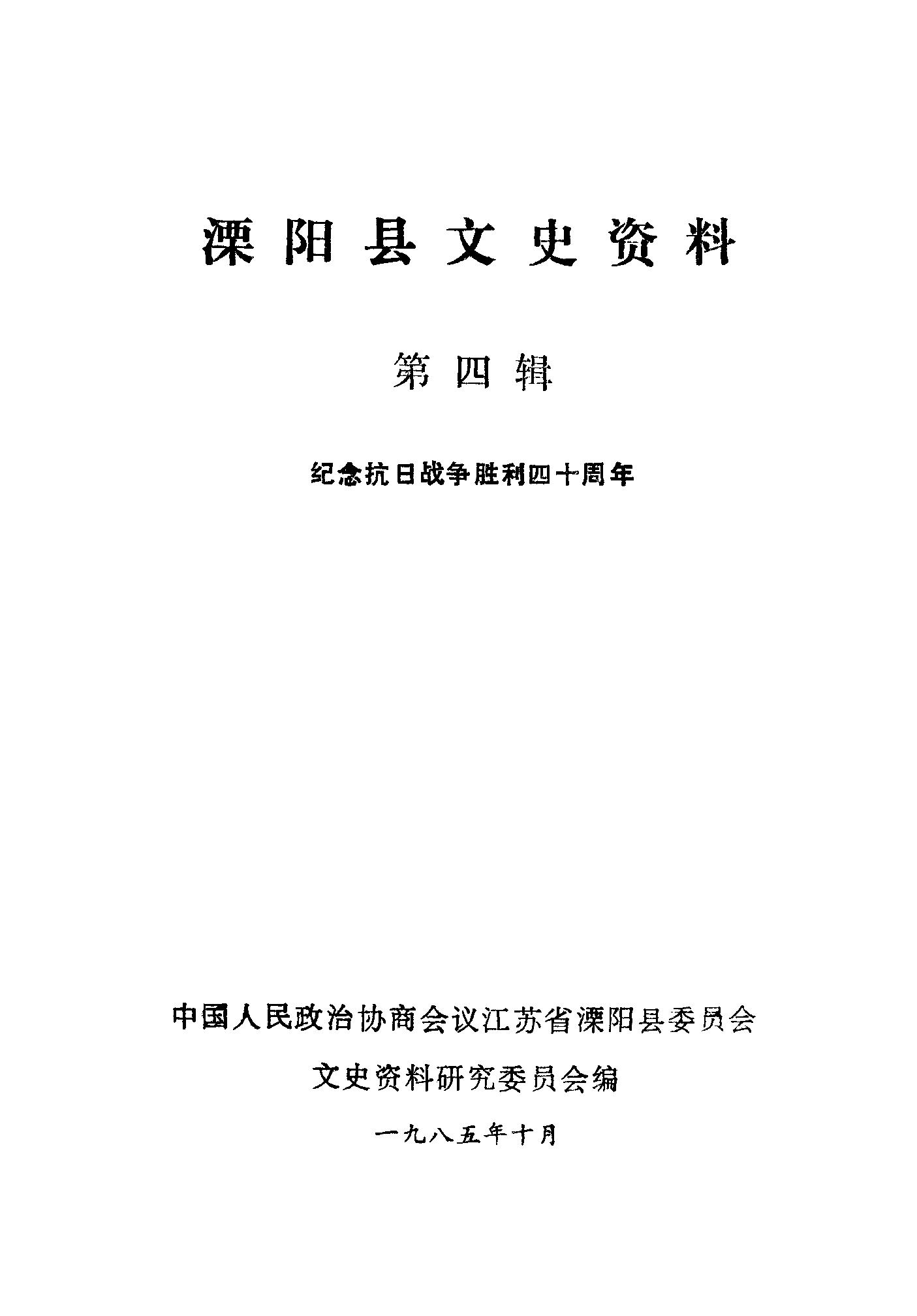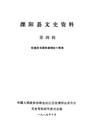 溧陽文史資料第四輯_政協江蘇省溧陽縣委員會文史資料研究委員會