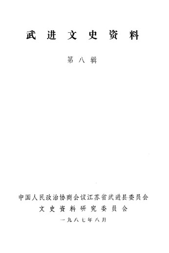 武進文史資料第八輯_政協江蘇省武進縣委員會文史資料研究委員會