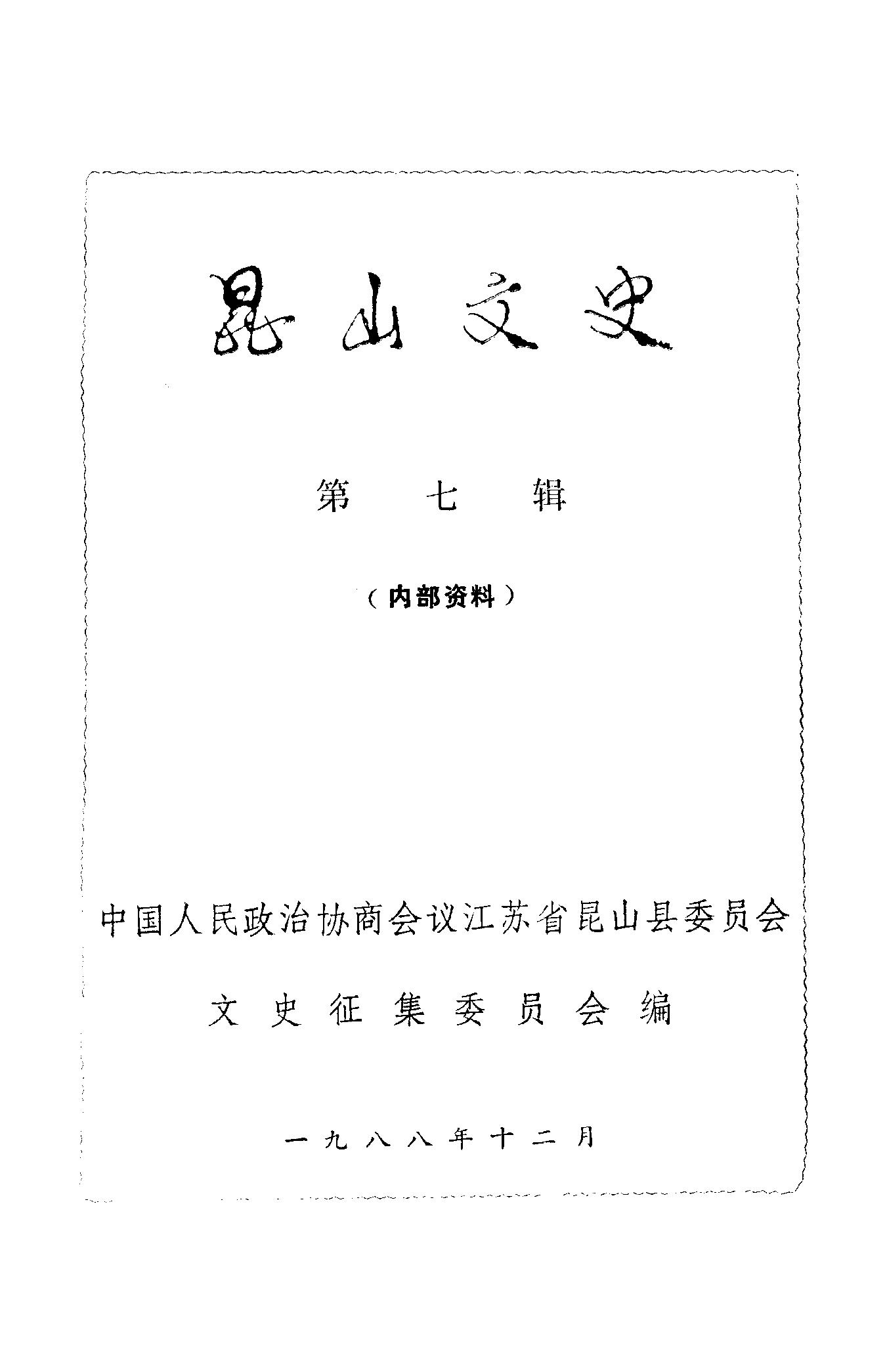 昆山文史第七輯_政協江蘇省昆山縣委員會文史徵集委員會