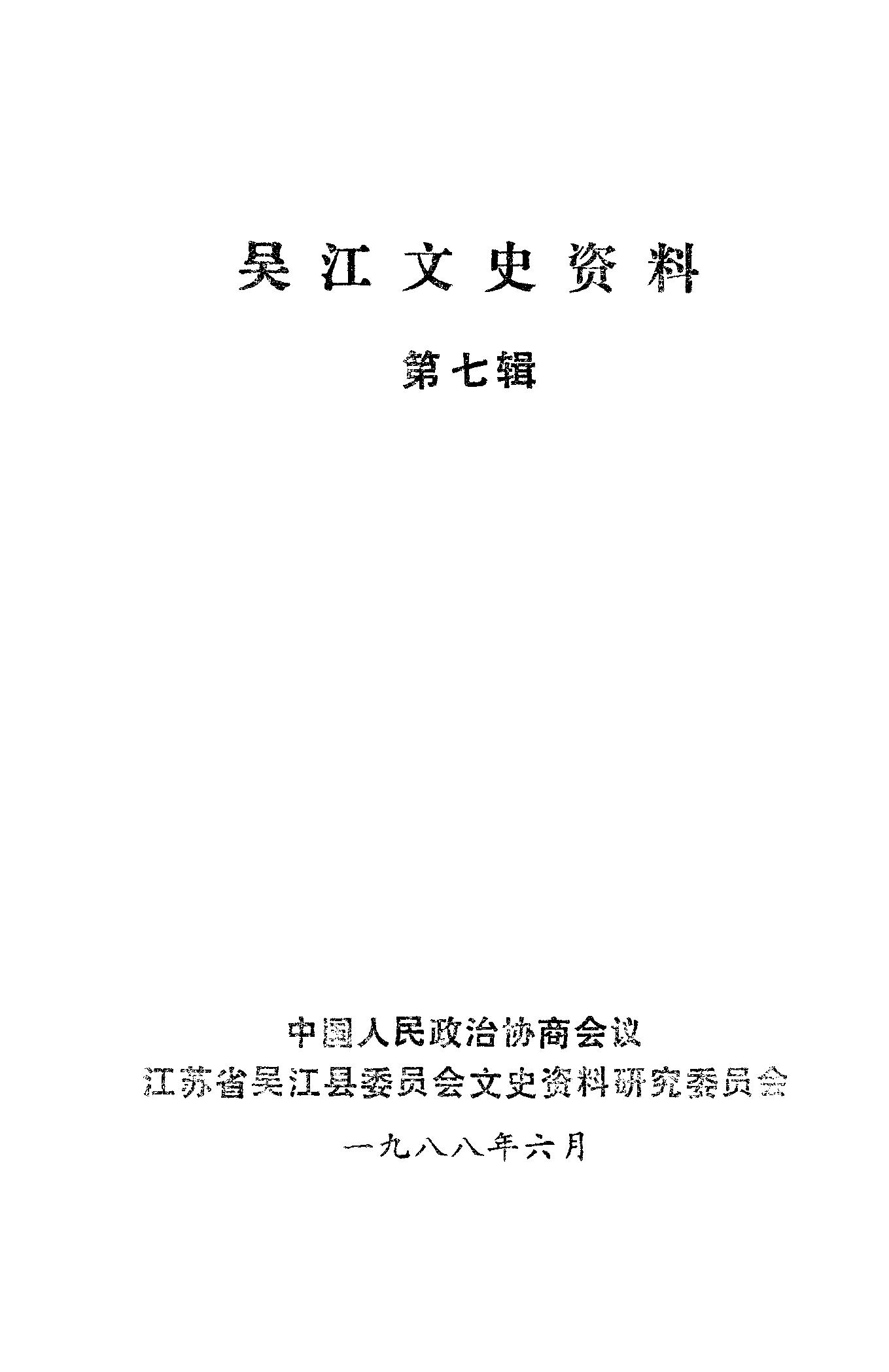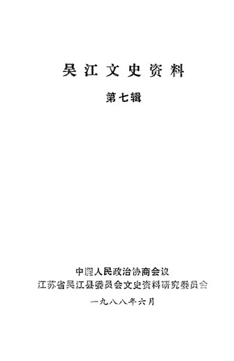 吳江文史資料第七輯_政協江蘇省吳江縣委員會文史資料研究委員會