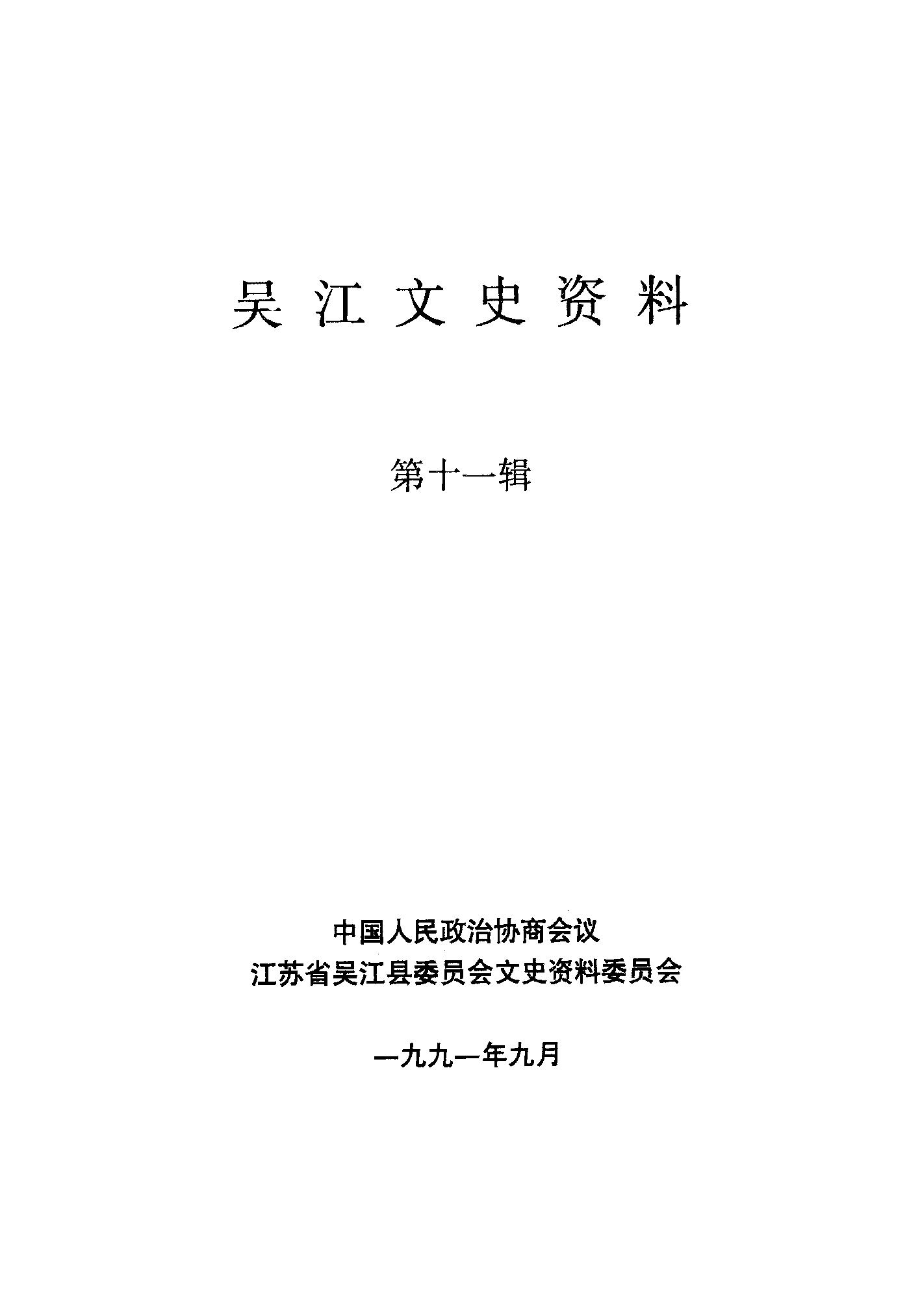 吳江文史資料第十一輯_政協江蘇省吳江縣委員會文史資料委員會