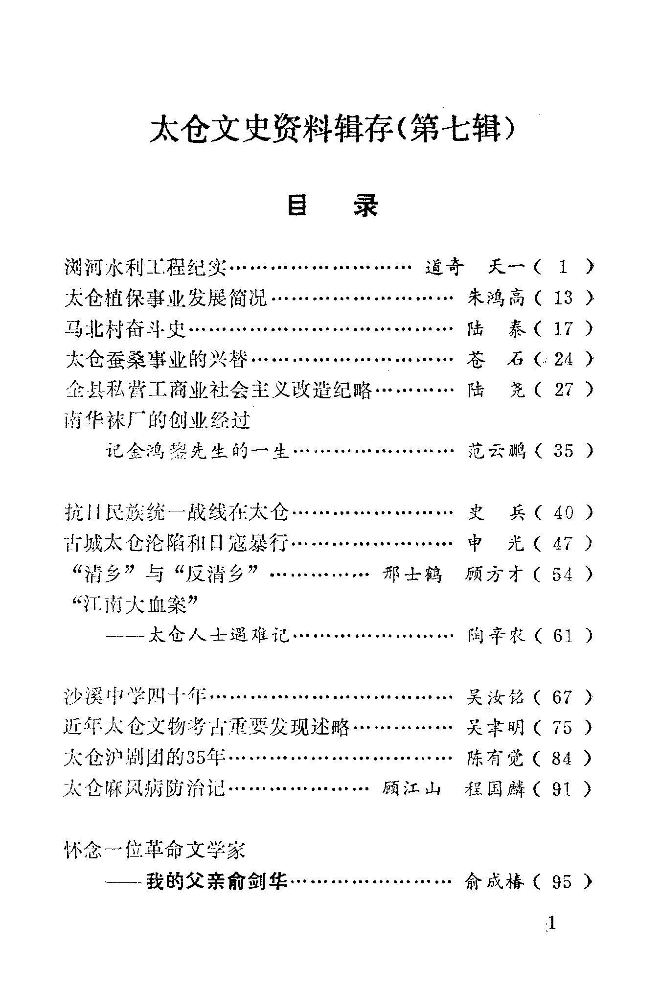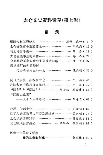 太倉文史資料輯存第七輯_政協太倉縣文史資料委員會