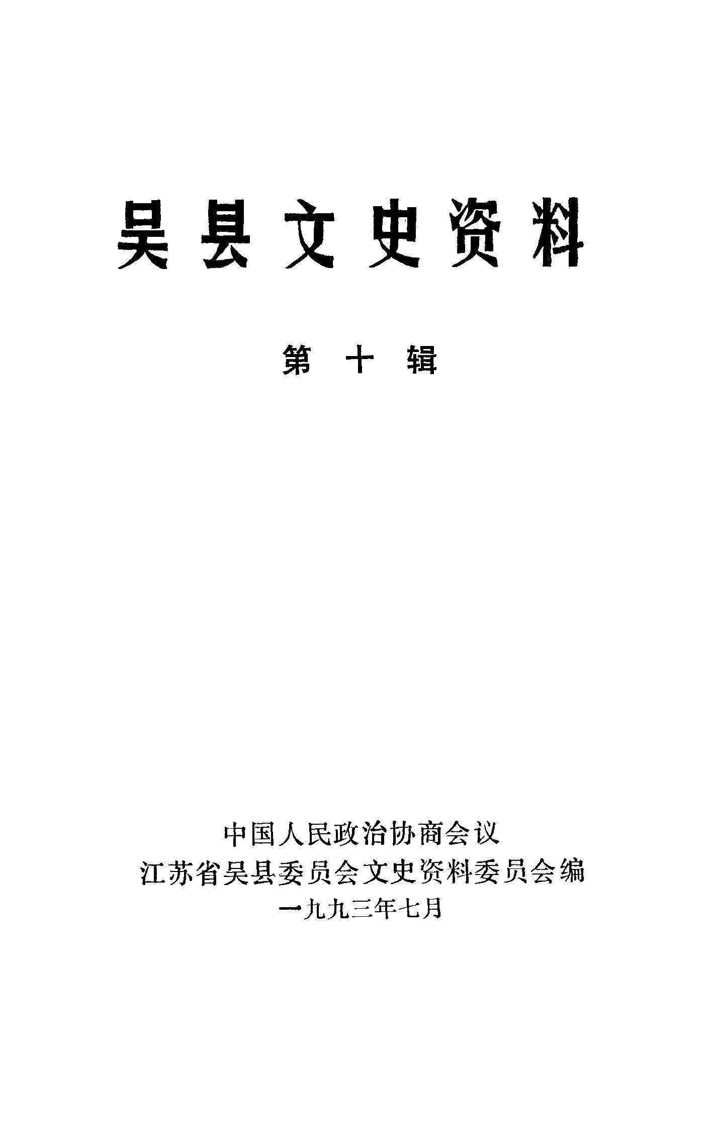 吳縣文史資料第十輯_政協江蘇省吳縣委員會文史資料委員會