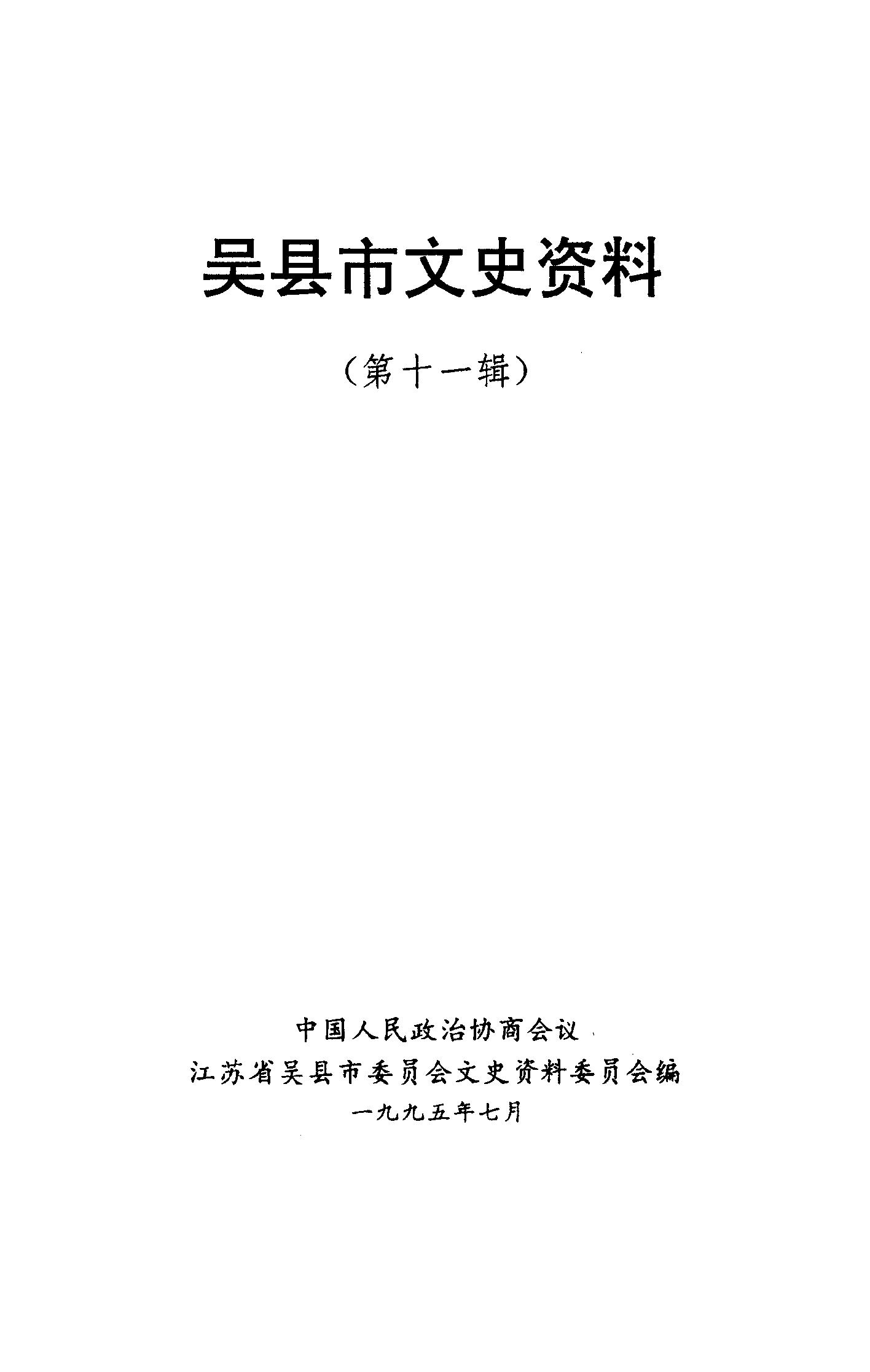 吳縣市文史資料第十一輯_政協江蘇省吳縣市委員會文史資料委員會