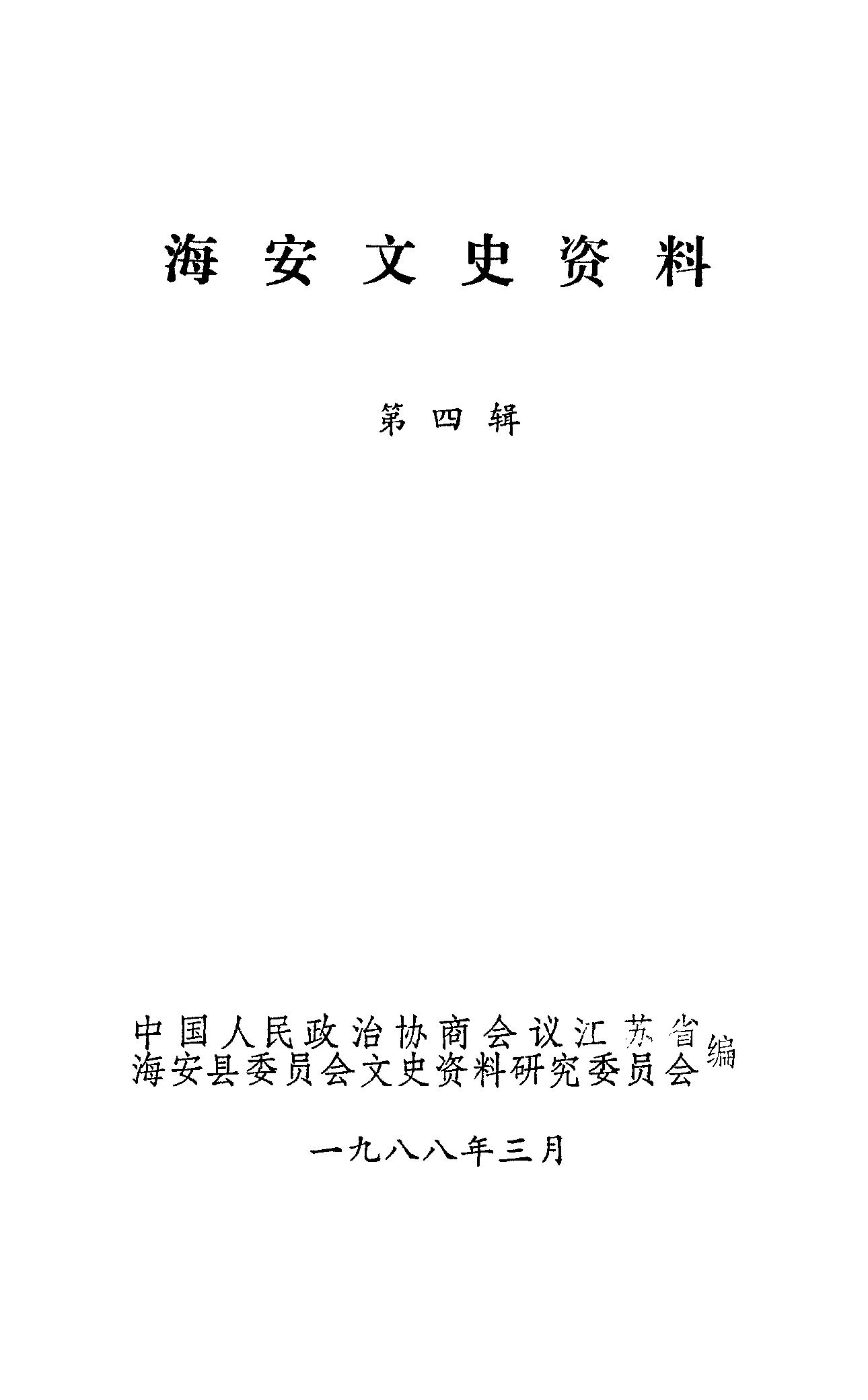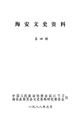 海安文史資料第四輯_政協江蘇省海安縣委員會文史資料研究委員會