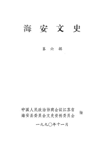 海安文史第六輯_政協江蘇省海安縣委員會文史資料委員會