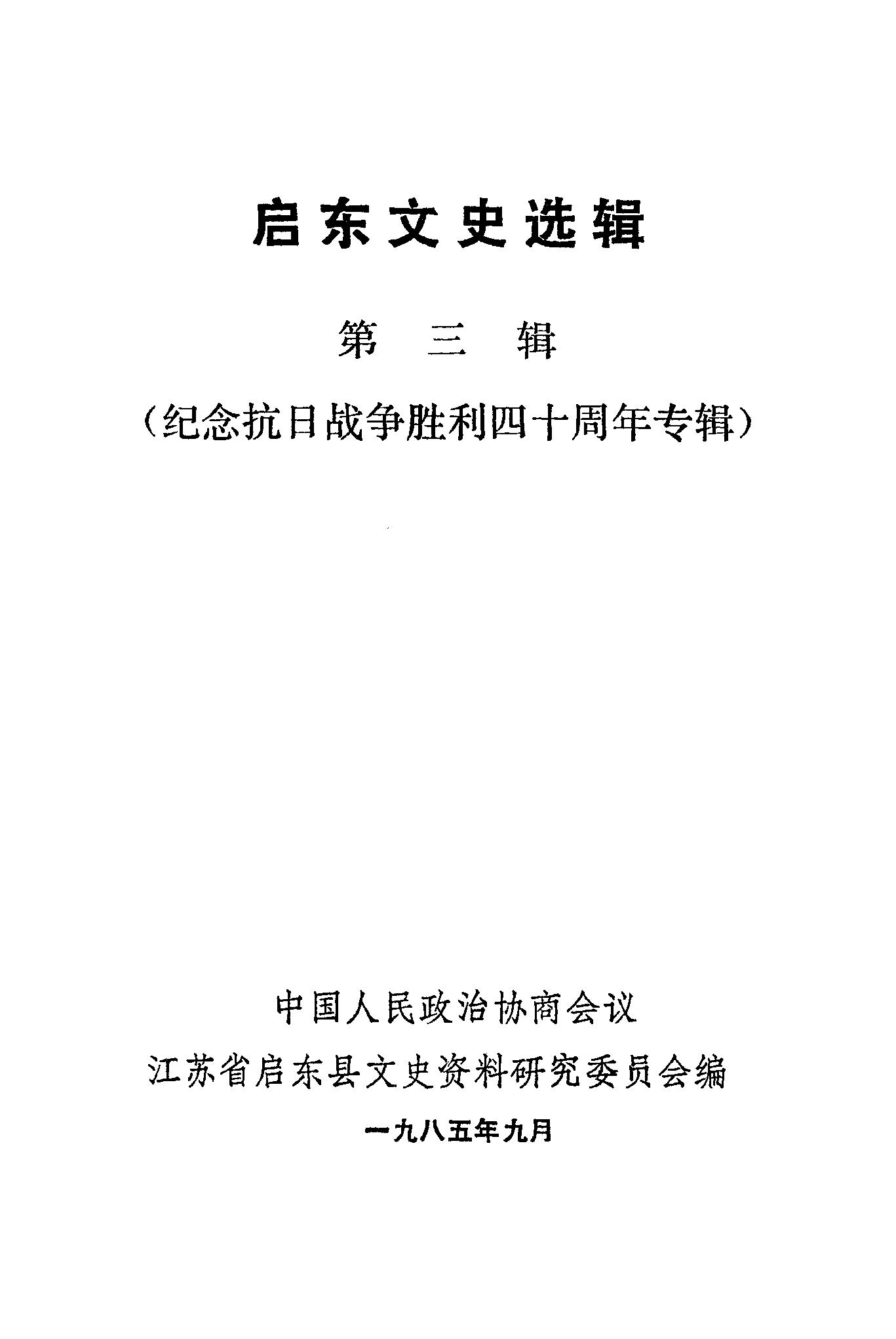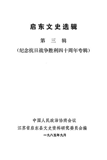 啟朹文史選輯第三輯_政協江蘇省啟朹縣文史資料研究委員會