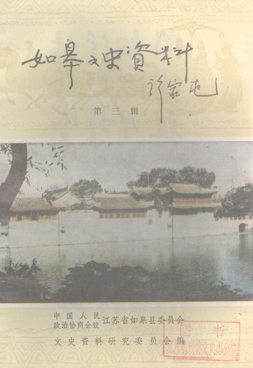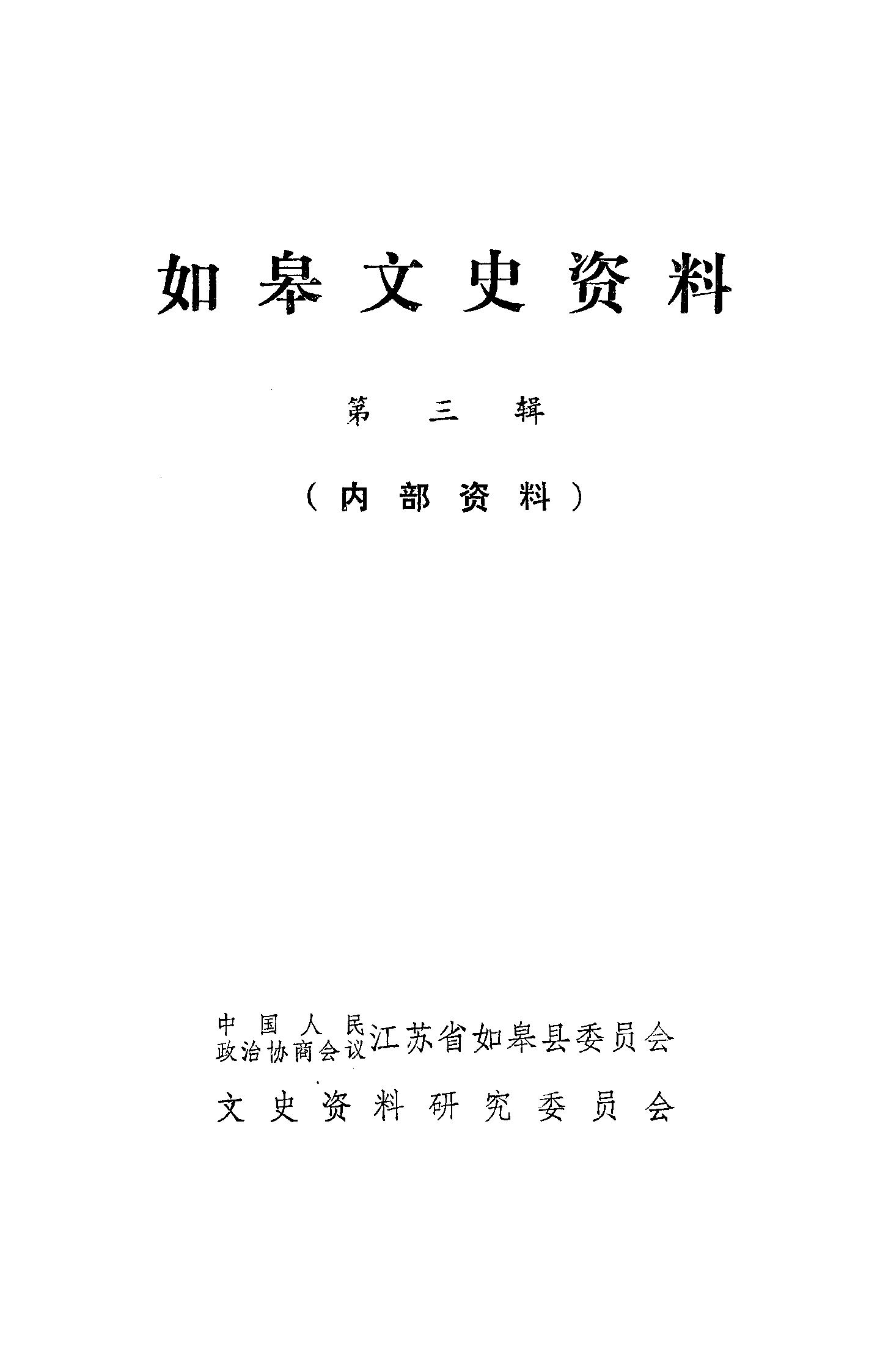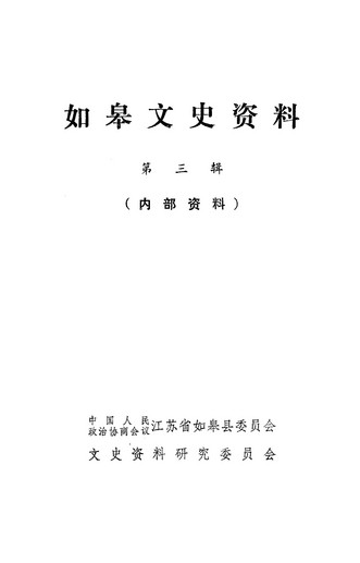 如皋文史資料第三輯_政協如皋縣委員會文史資料研究委員會