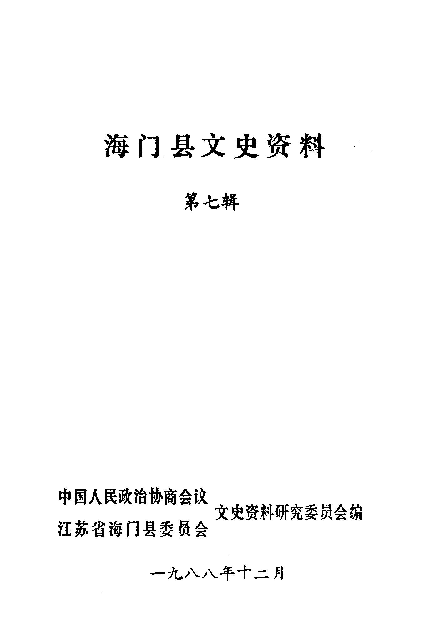 海門縣文史資料第七輯_政協江蘇省海門縣委員會文史資料研究委員會