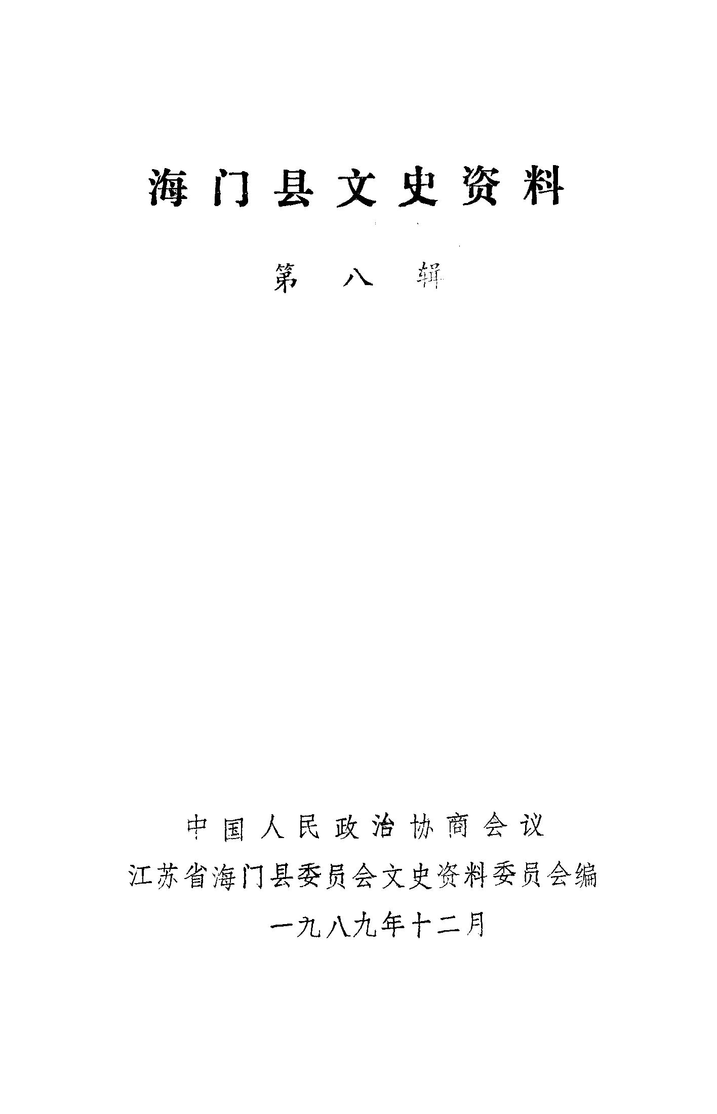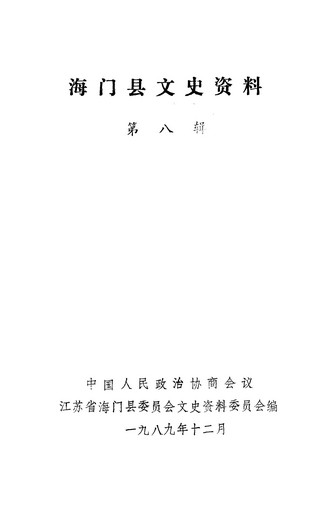 海門縣文史資料第八輯_政協江蘇省海門縣委員會文史資料委員會