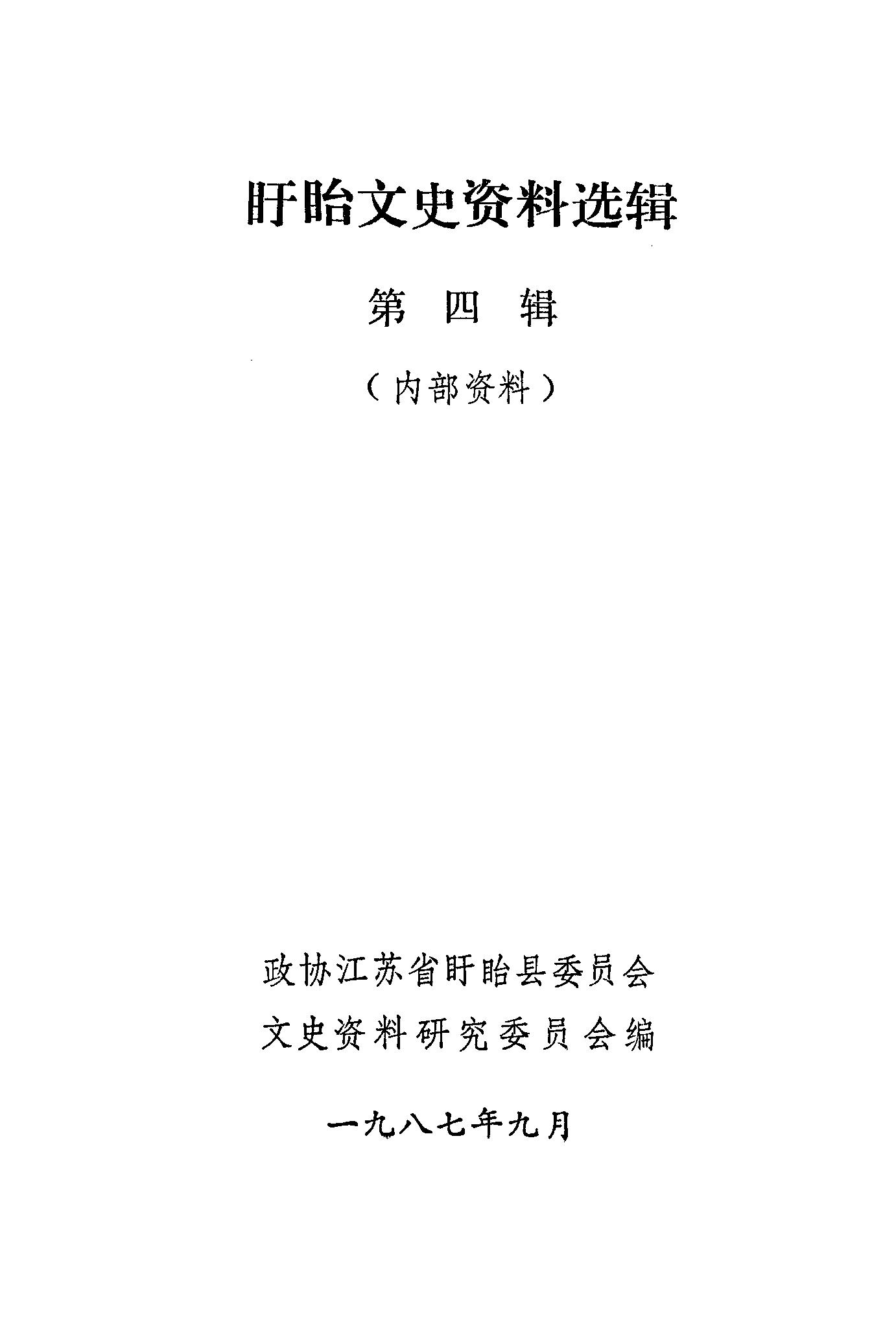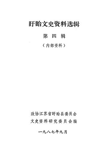 盱眙文史資料選輯第四輯_政協江蘇省盱眙縣委員會文史資料研究委員會