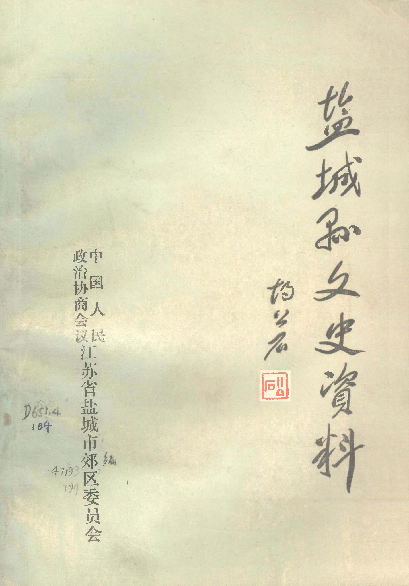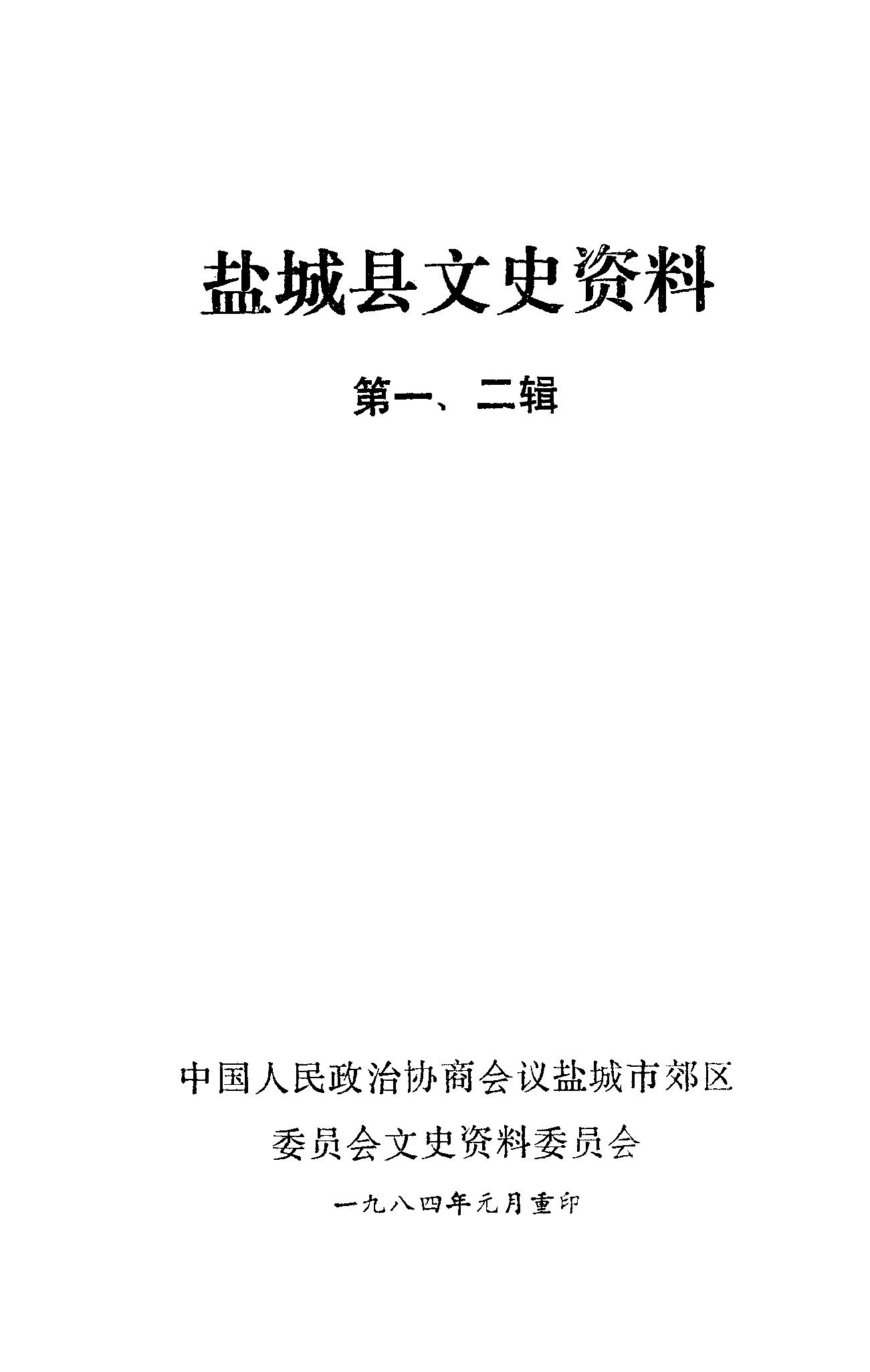鹽城縣文史資料第一二輯_政協鹽城市郊區委員會文史資料委員會