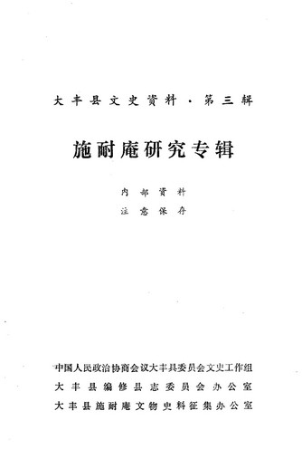 大豐縣文史資料第三輯_政協大豐縣委員會文史工作組大豐縣編修縣志委員會辦公室大豐縣施耐庵文物史料徵集辦公室