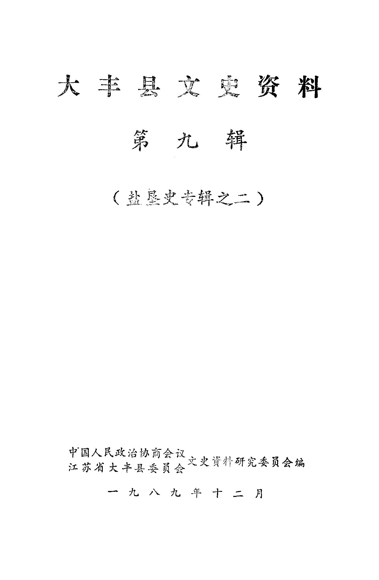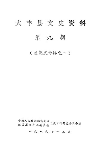 大豐縣文史資料第九輯_大豐縣文史資料研究委員會政協