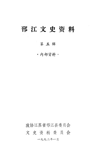 邗江文史資料第五輯_政協江蘇省邗江縣委員會文史資料委員會
