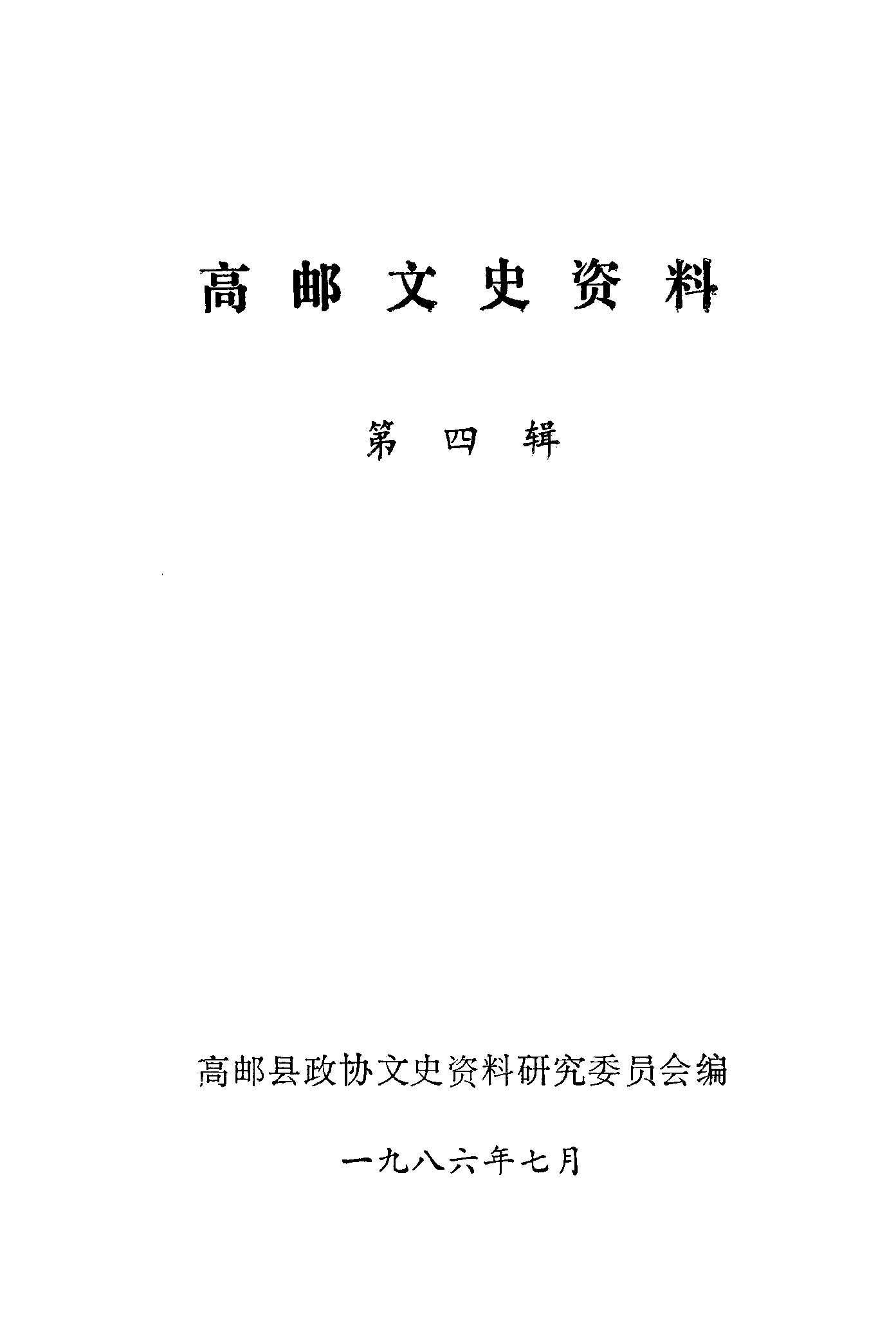 高郵文史資料第四輯_高郵縣政協文史資料研究委員會