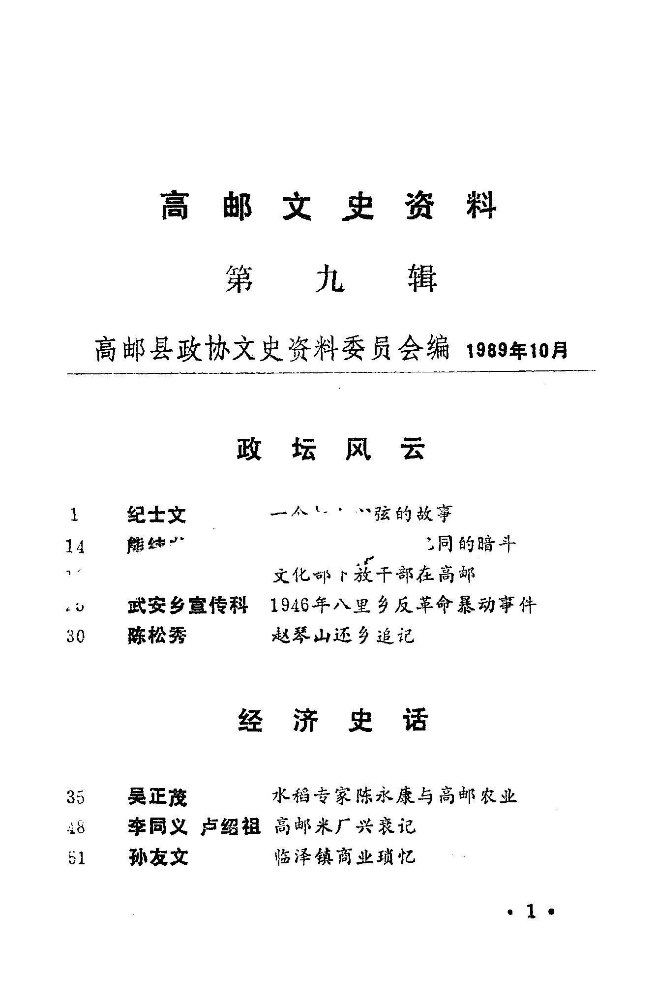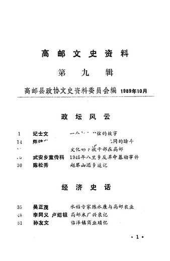 高郵文史資料第九輯_高郵縣政協文史資料委員會
