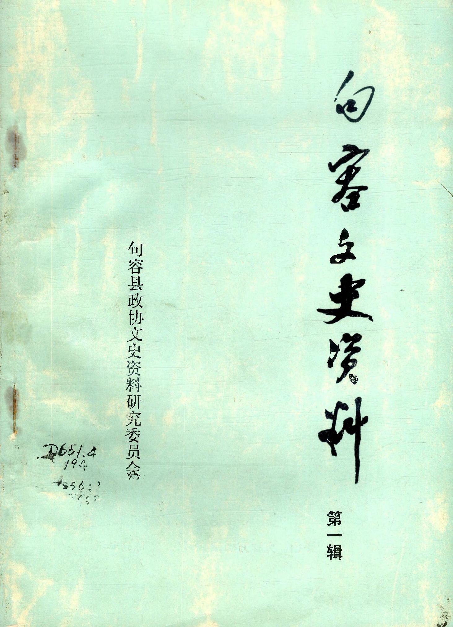 句容文史資料第一輯_政協江蘇省句容縣委員會文史資料研究委員會