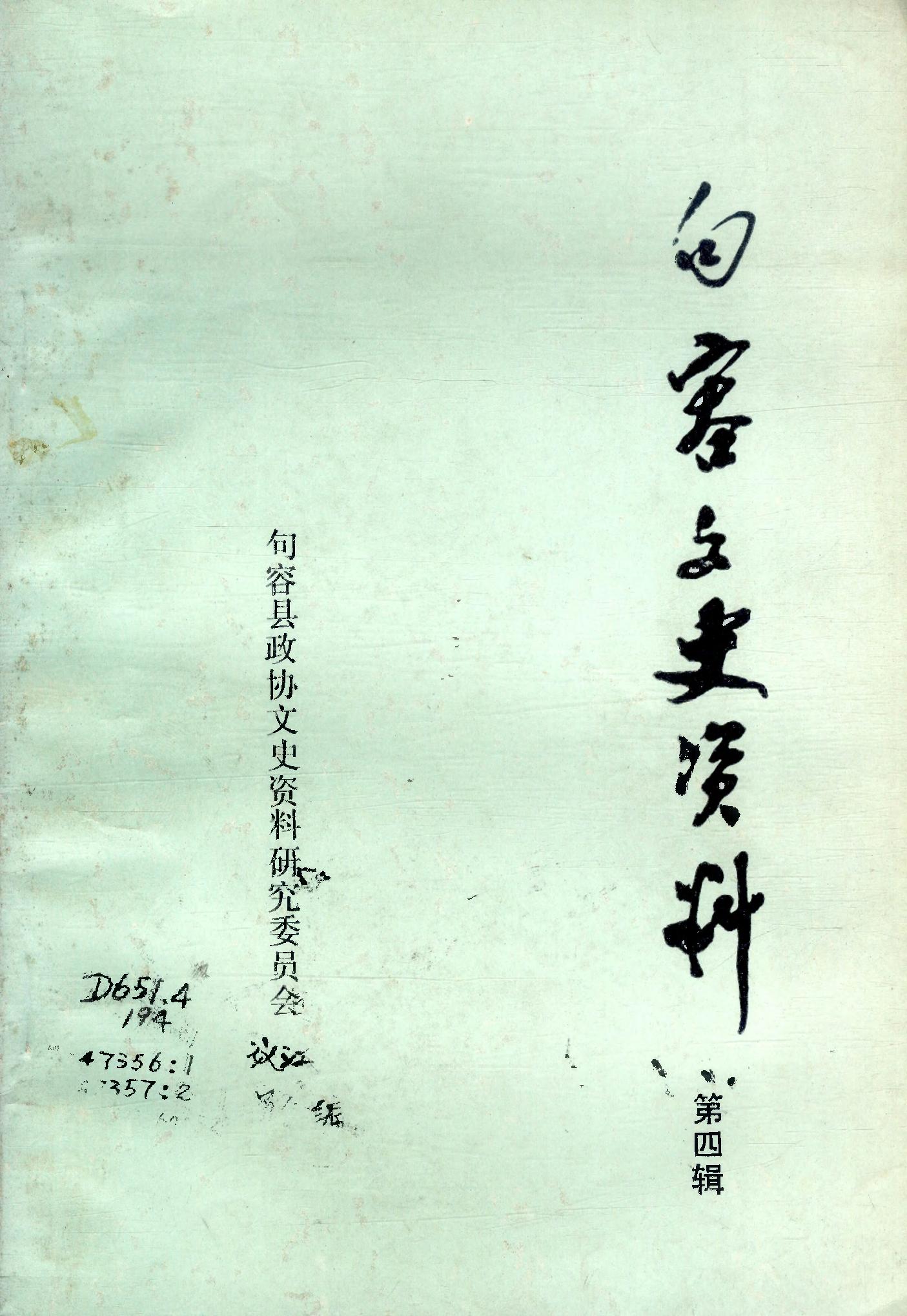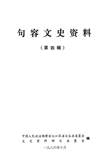 句容文史資料第四輯_政協江蘇省句容縣委員會文史資料研究委員會