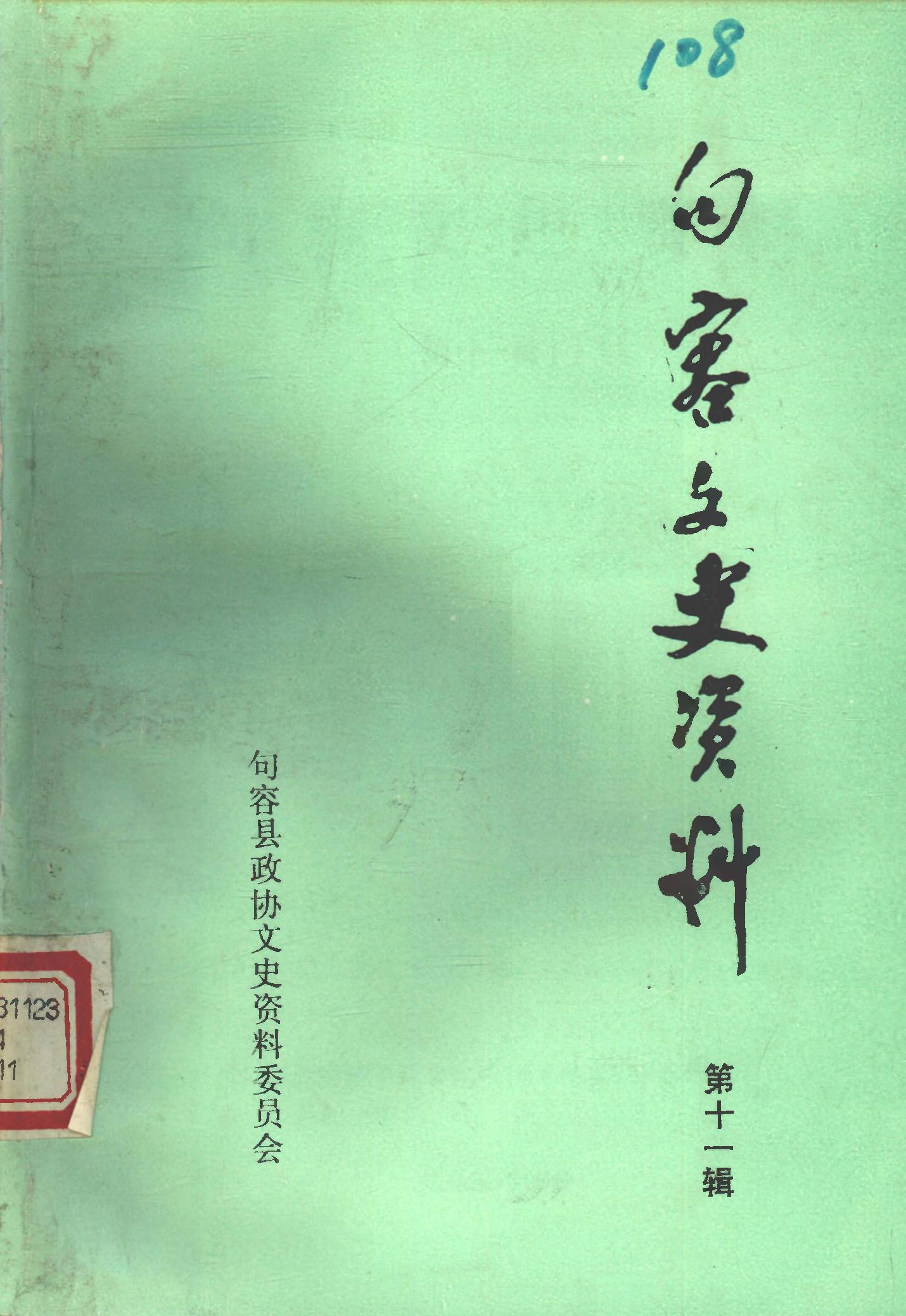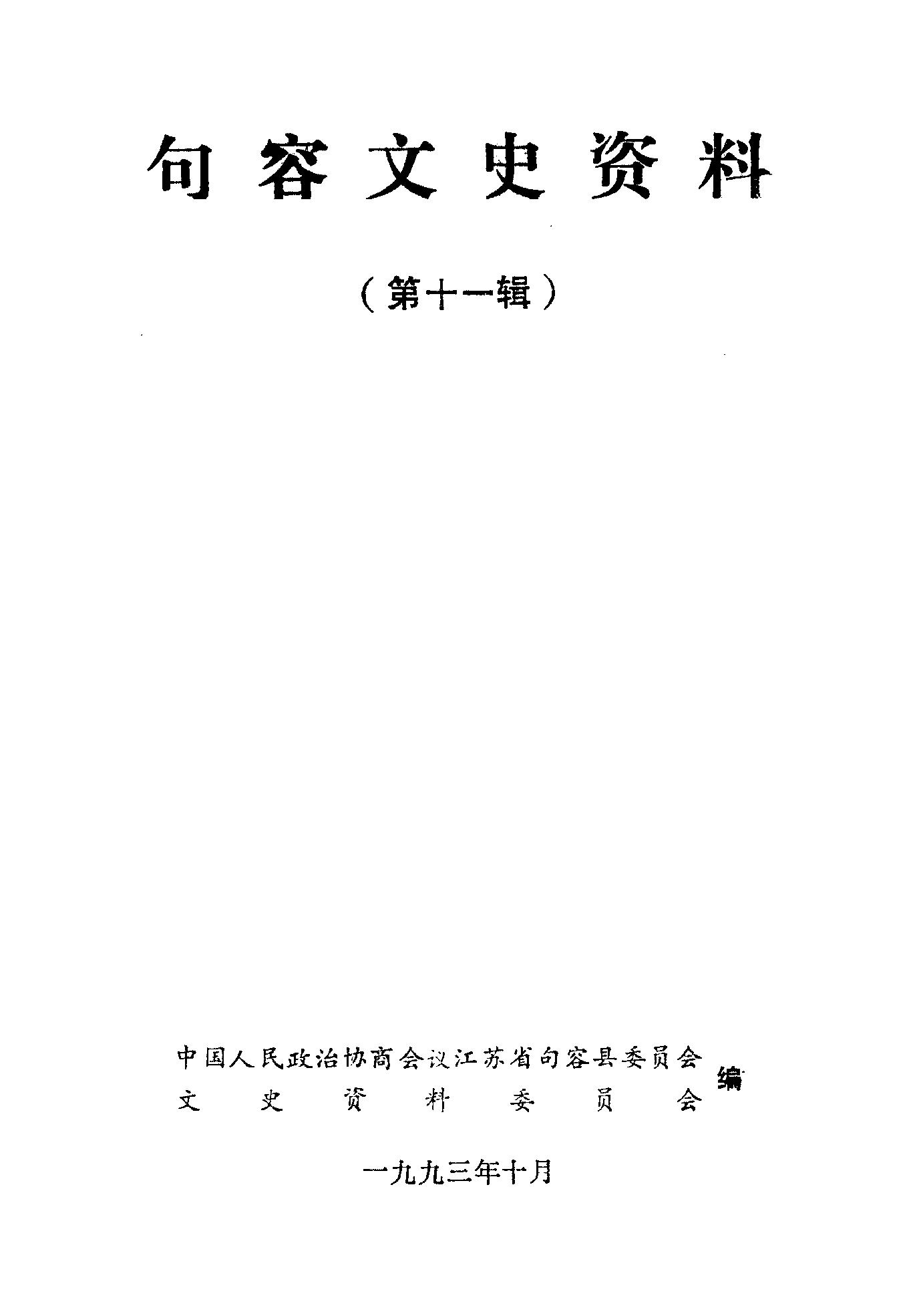 句容文史資料第十一輯_政協江蘇省句容縣委員會文史資料委員會