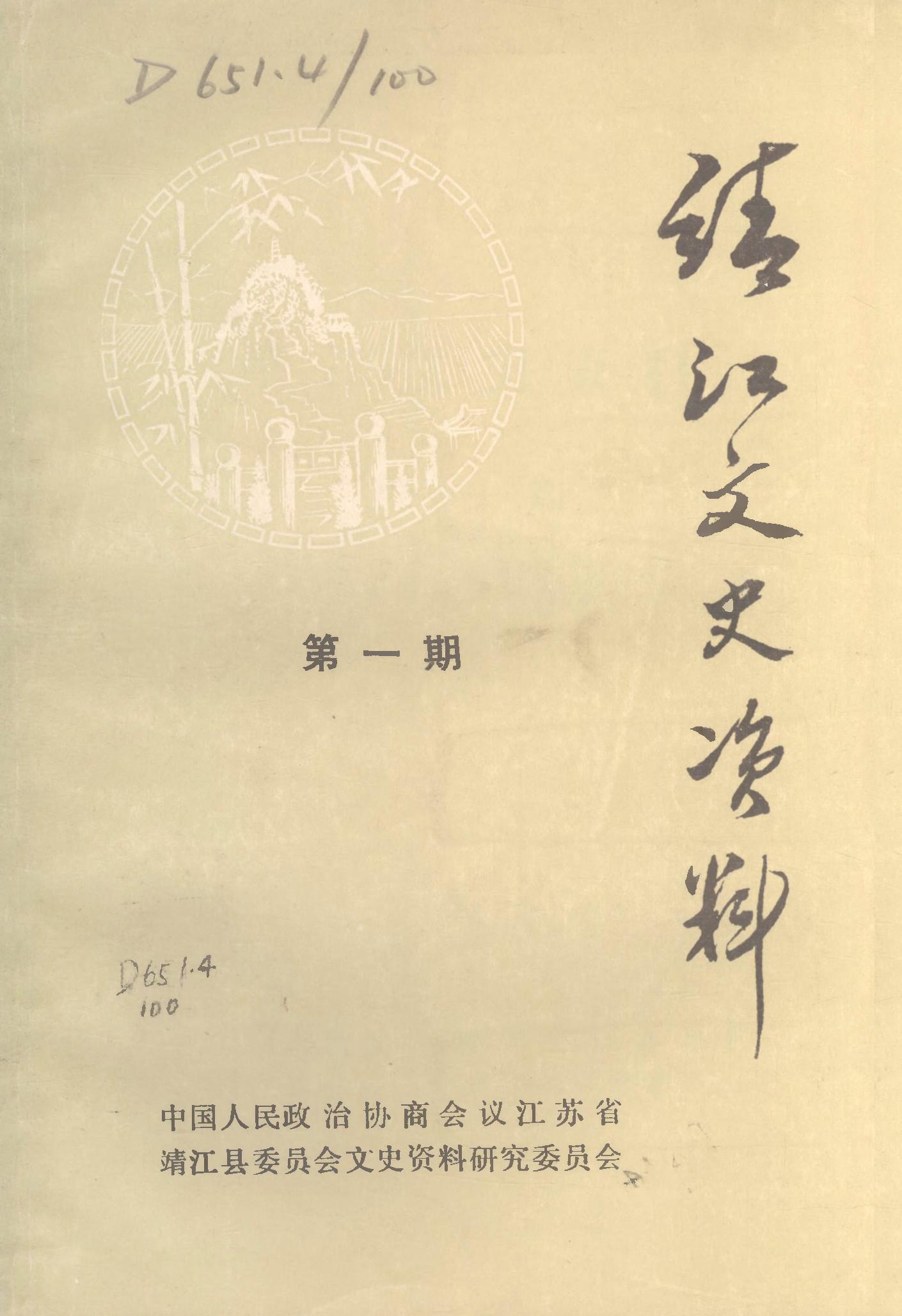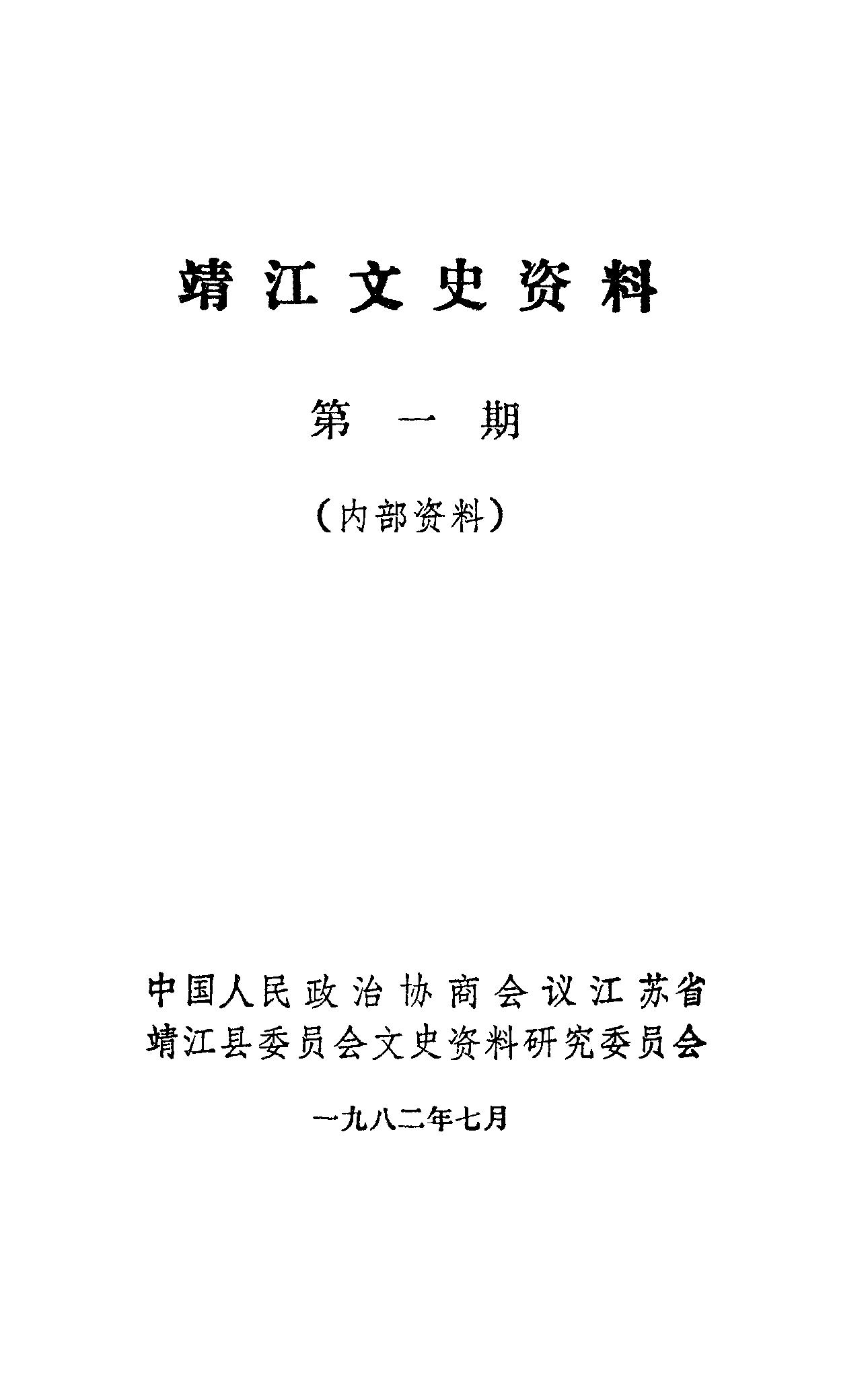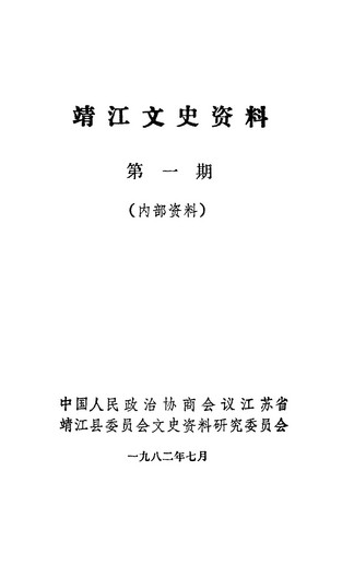 靖江文史資料第一期_政協江蘇省靖江縣委員會文史資料研究委員會靖江縣政協文史資料研究委員會