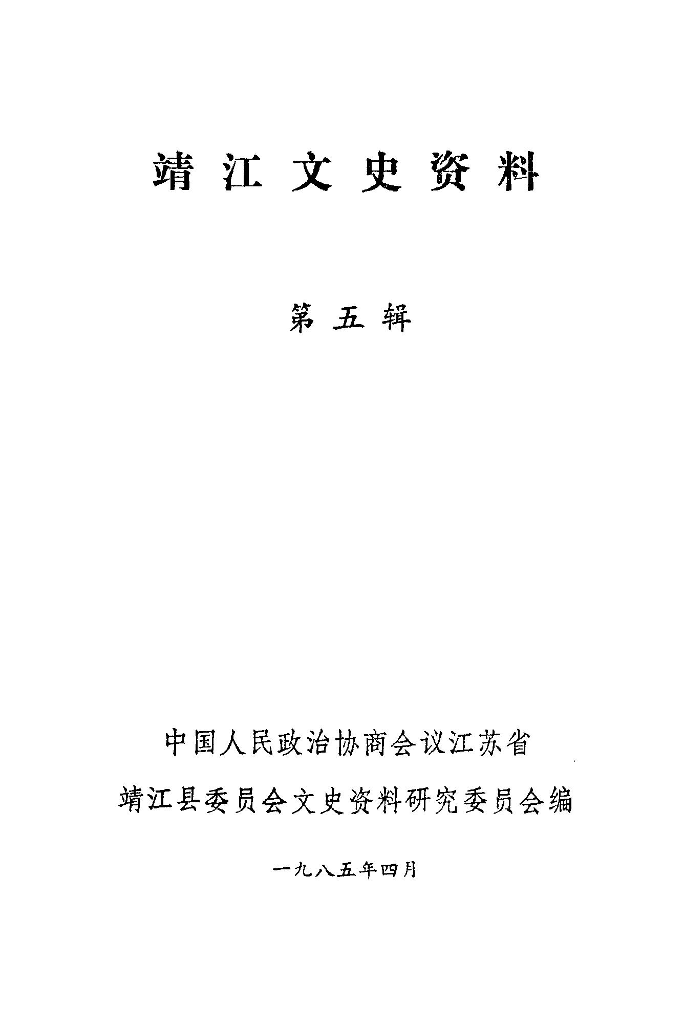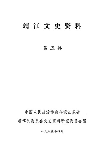 靖江文史資料第五輯_政協江蘇省靖江縣委員會文史資料研究委員會