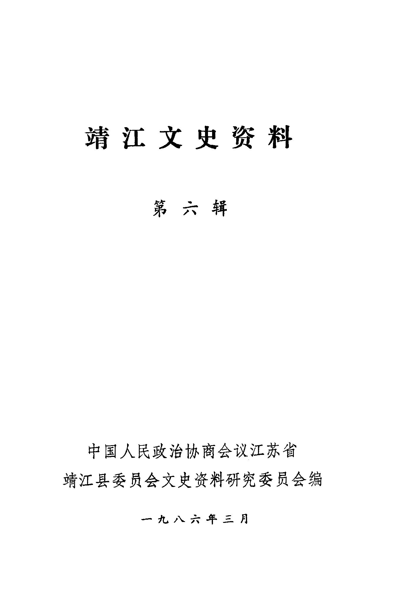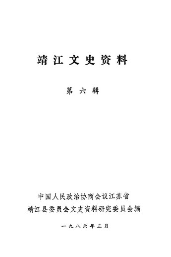 靖江文史資料第六輯_政協江蘇省靖江縣委員會文史資料研究委員會